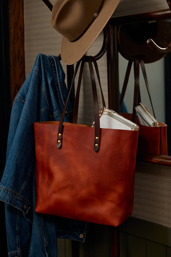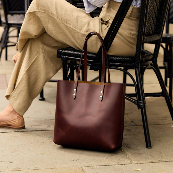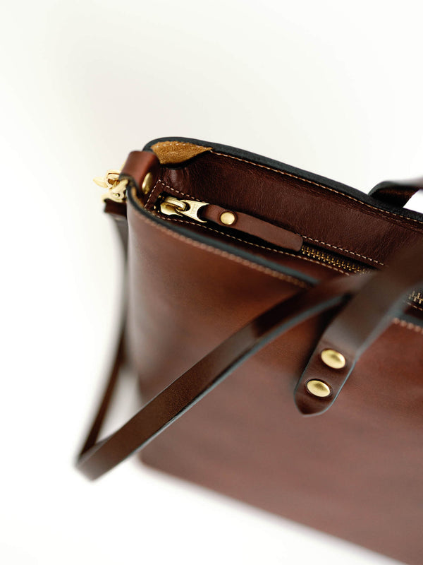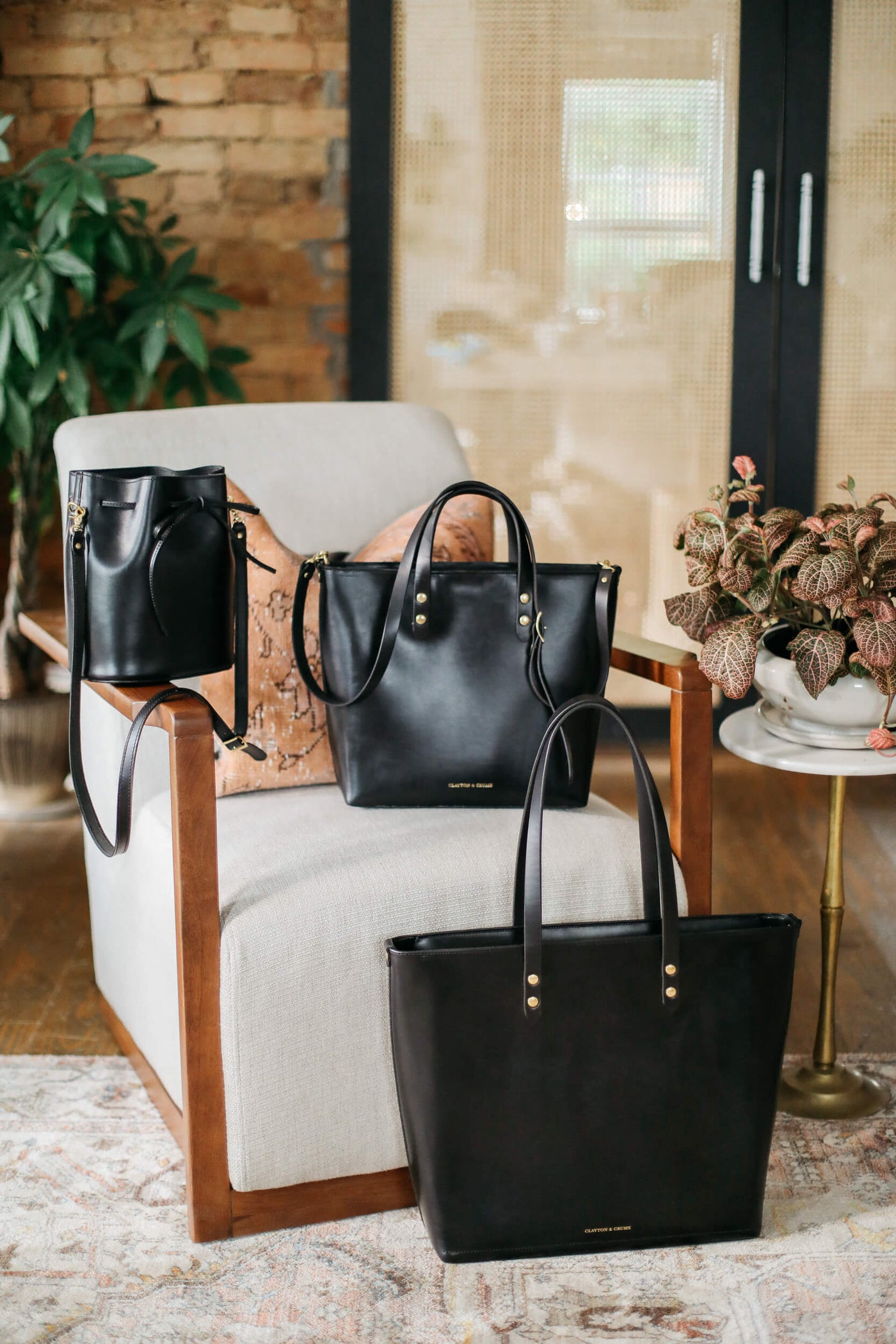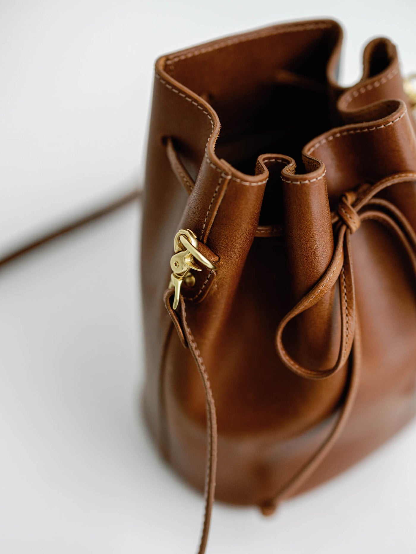 Our Bucket Bag is meticulously handcrafted and constructed with the highest quality full-grain leather, stitched with robust thread, and finished with our solid brass hardware —guaranteed to outlast any handbag in your closet. Our leather bags are backed with our honest guarantee, we stand behind the goods that we create.