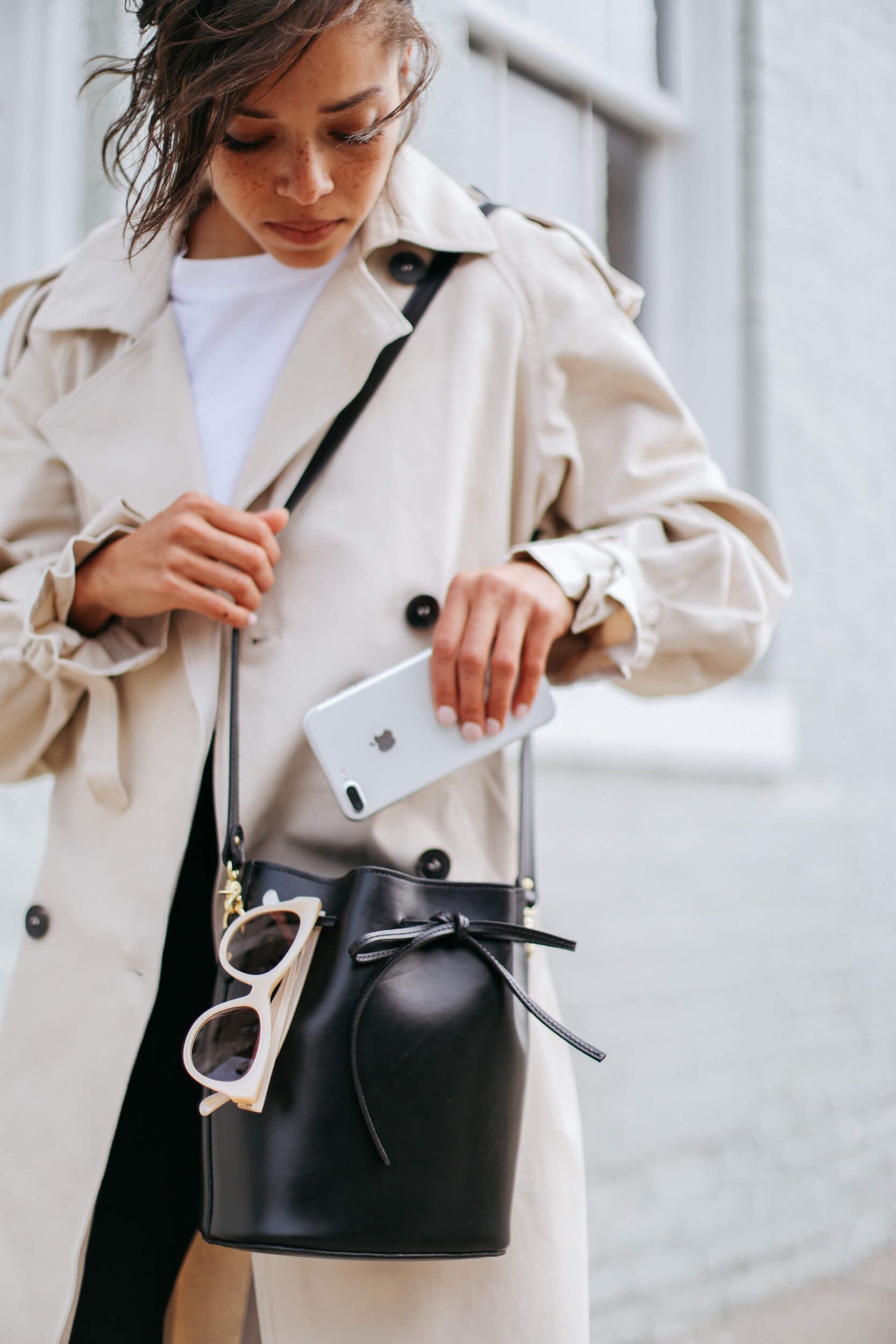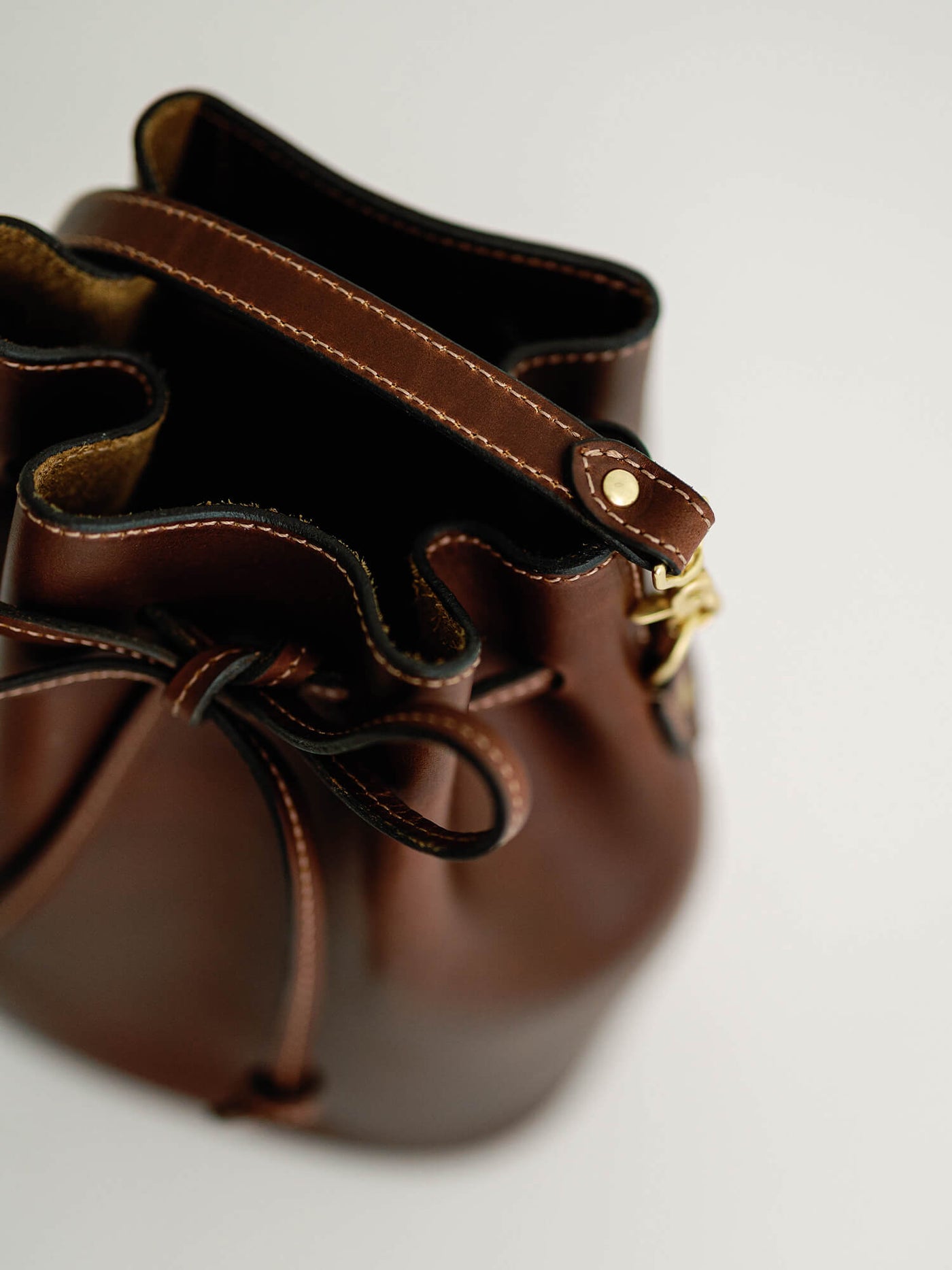 Our Bucket Bag design required more time and attention-to-detail than almost anything we’ve constructed before. Its feminine silhouette is truly what makes it stand out, and our leather drawstring is handcrafted to effortlessly tie into the perfect bow.