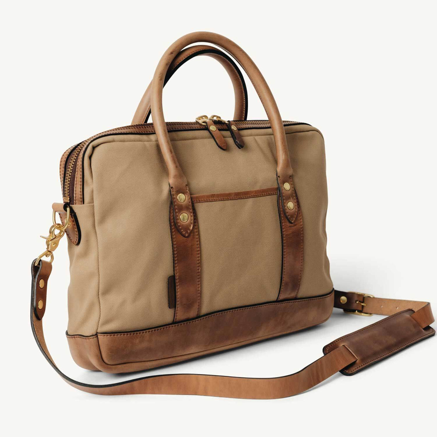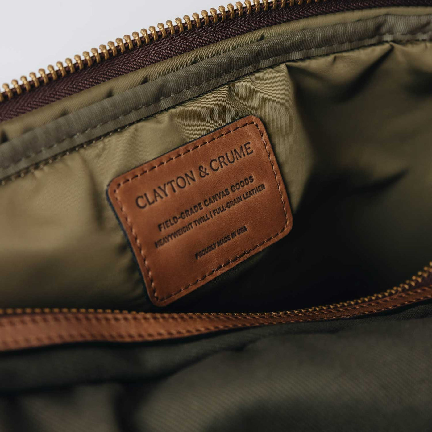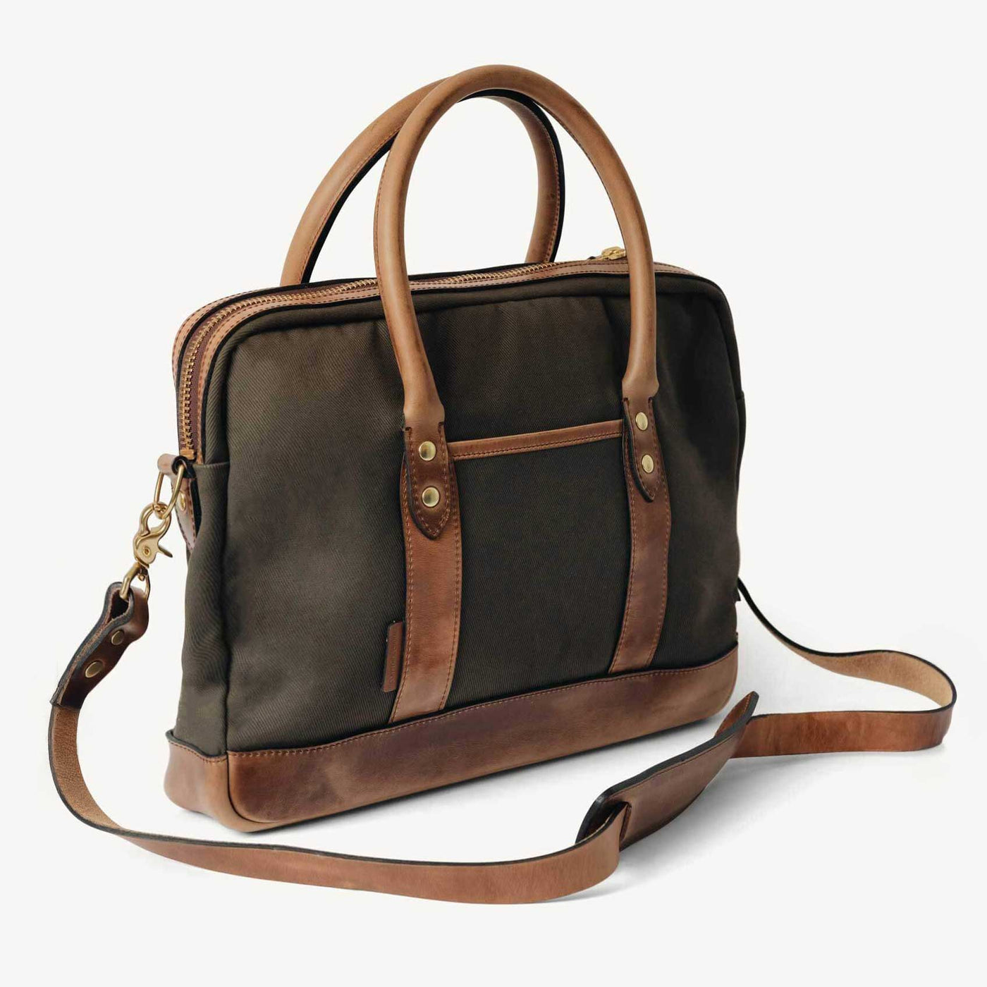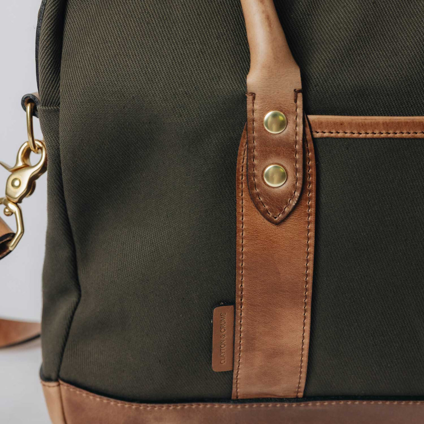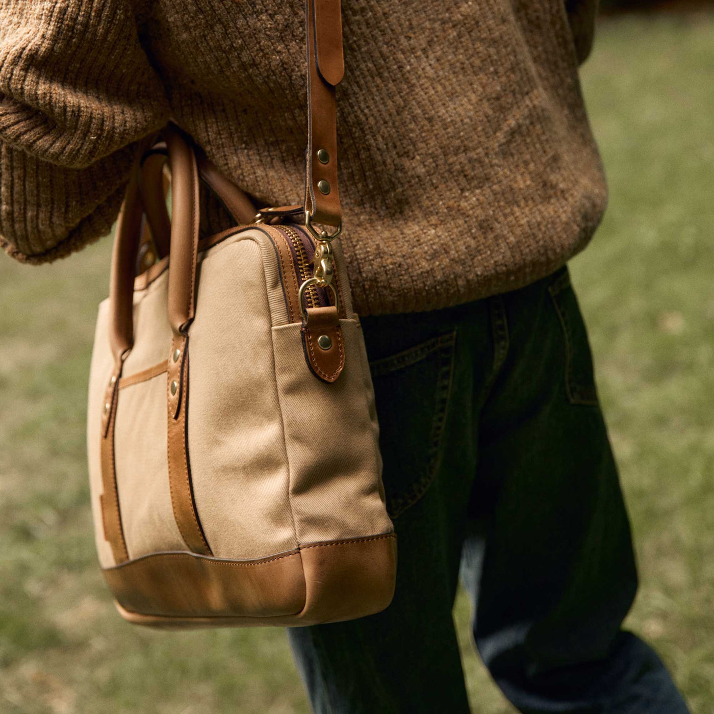 Our goal was to take the same quality and details in our leather messenger and bring them to canvas. The shell is cut from heavyweight, water-repellent 18 oz field-grade twill, then finished at every touchpoint with full-grain Horween leather and locked down with solid brass hardware. A heavy-duty zipper keeps the main compartment secure. When the day gets long, a quick wipe keeps it looking sharp.