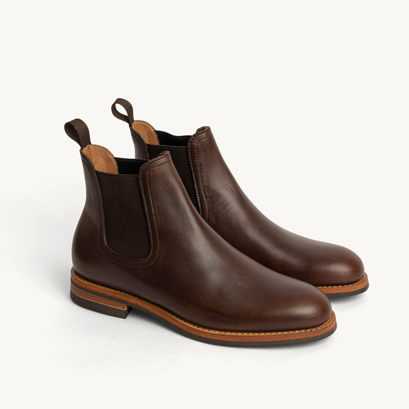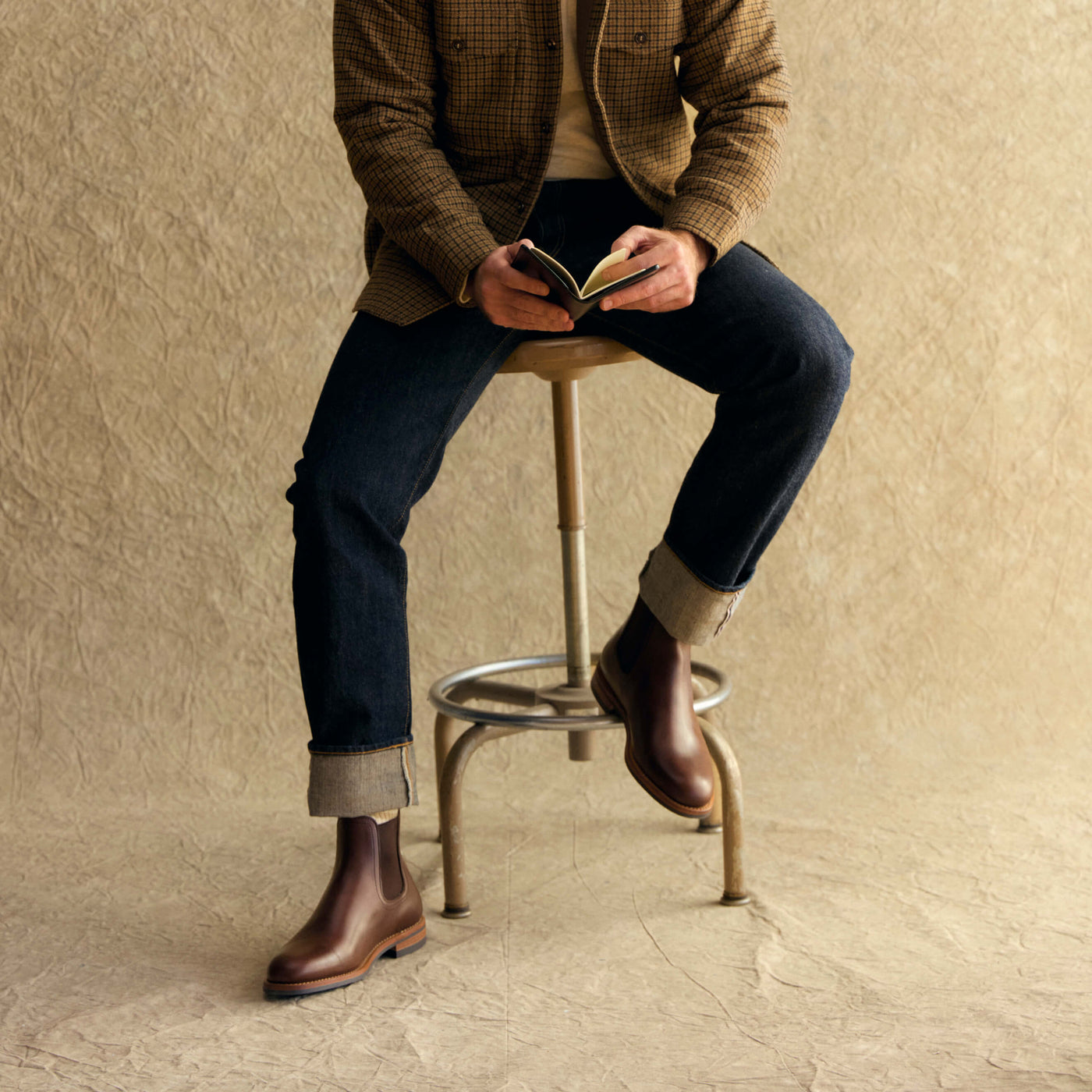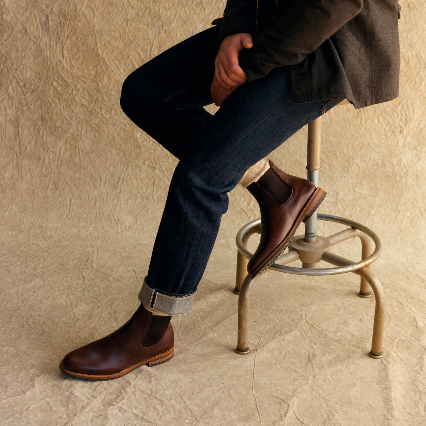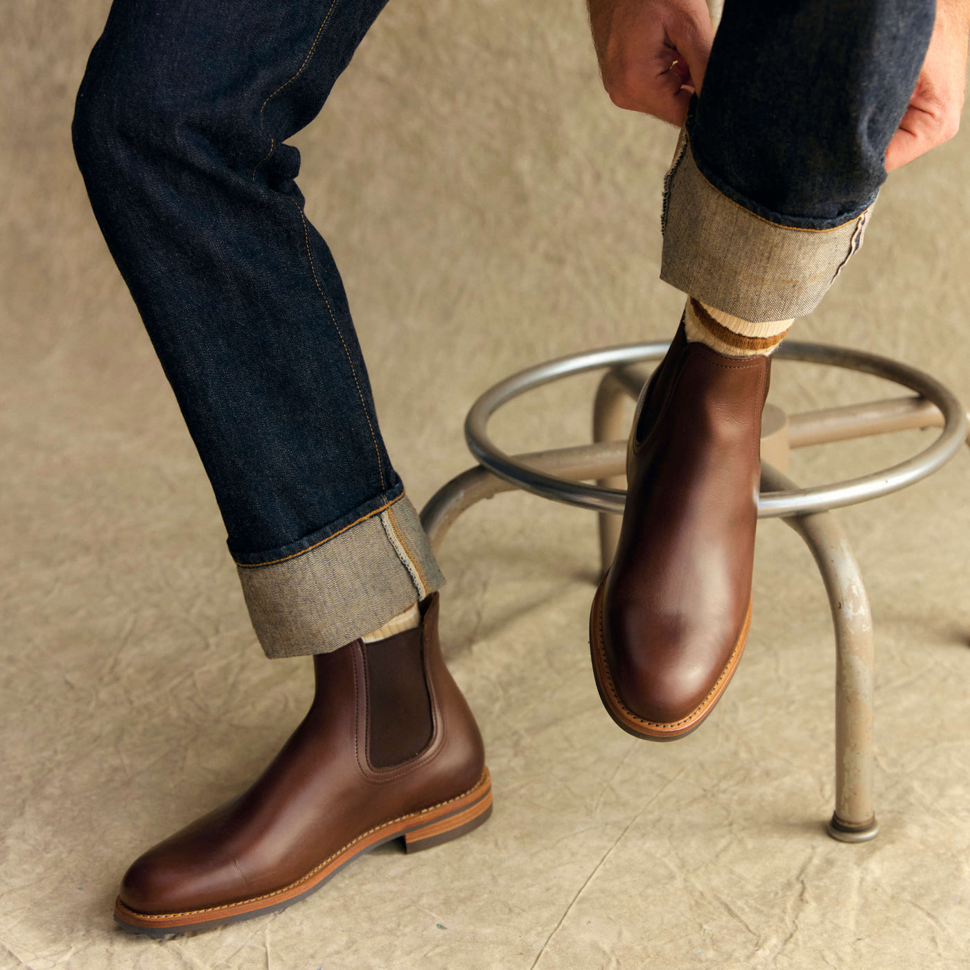 Our Chelsea Boots are crafted with USA Horween Leather, sourced directly from the tannery in Chicago. Chromexcel leather was developed a century ago and it was made specifically for boots. It’s a high-quality leather, hot-stuffed with oils and waxes, making it highly weather-resistant. You can wear these boots in rain or snow, and they’ll hold up beautifully. Chromexcel leather is also exceptionally soft, allowing for a quick and comfortable break-in period.