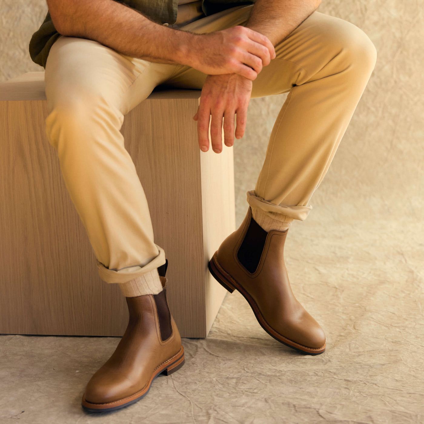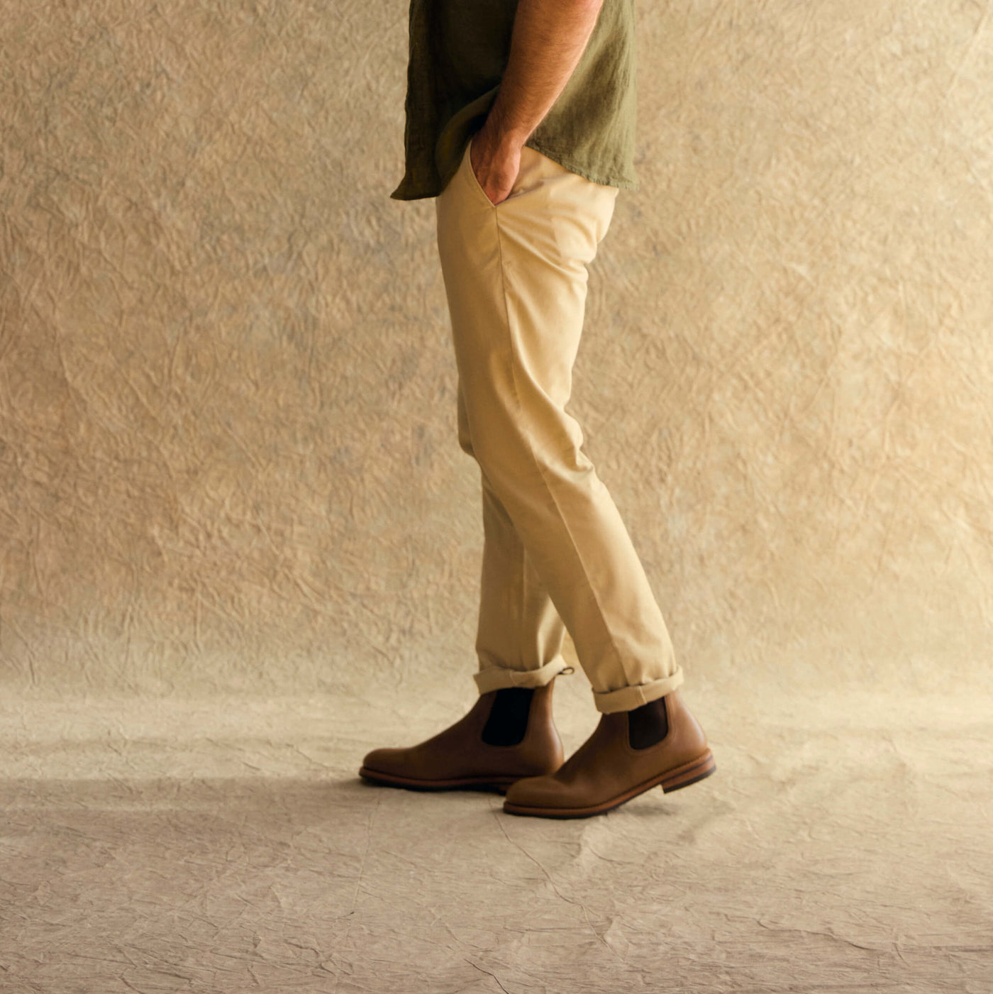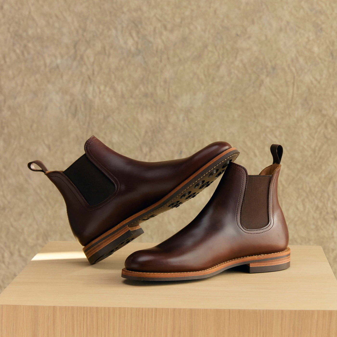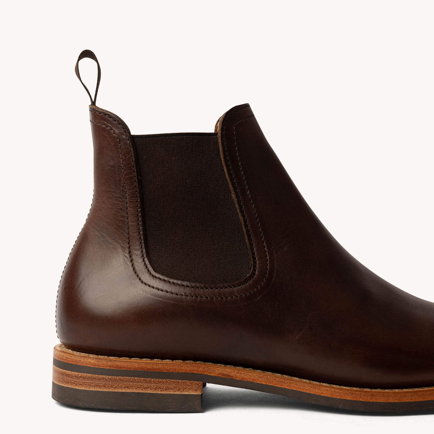 Our Chelsea Boots are crafted with USA Horween Leather, sourced directly from the tannery in Chicago. Chromexcel leather was developed a century ago and it was made specifically for boots. It’s a high-quality leather, hot-stuffed with oils and waxes, making it highly weather-resistant. You can wear these boots in rain or snow, and they’ll hold up beautifully. Chromexcel leather is also exceptionally soft, allowing for a quick and comfortable break-in period.