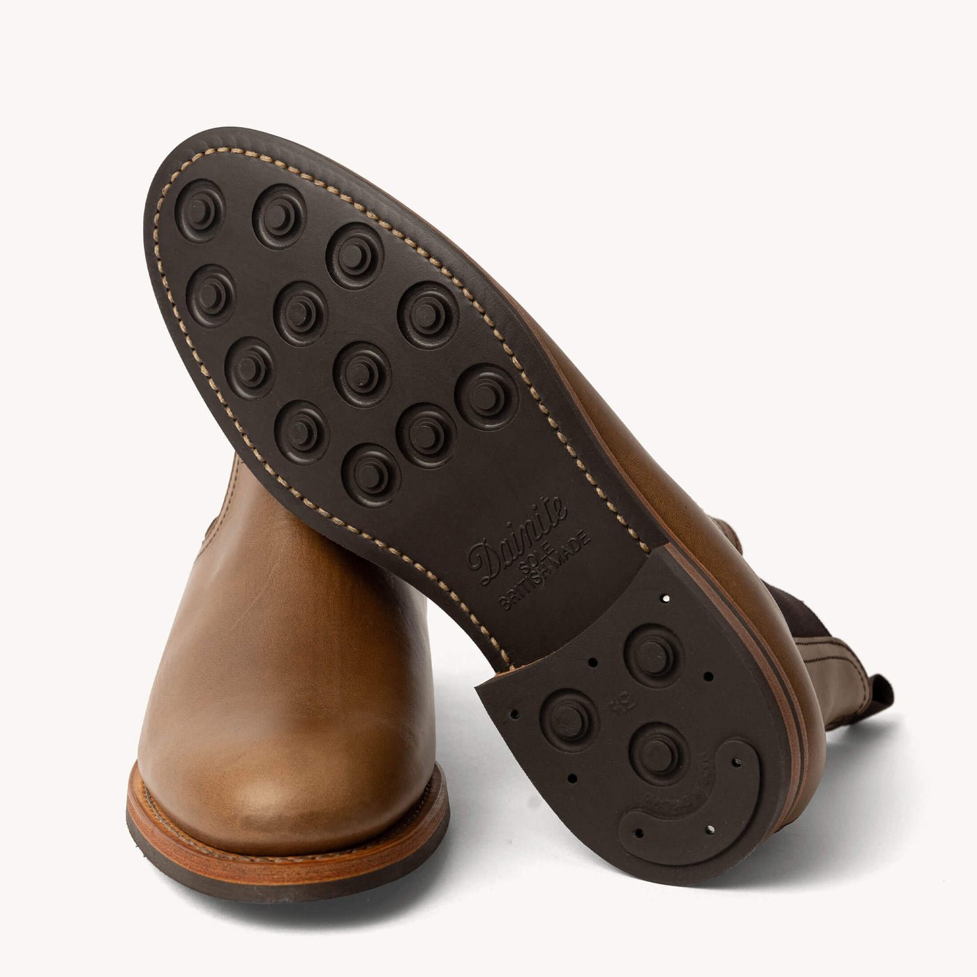 Our boots also feature a Dainite sole, a heritage sole known for its exceptional quality. It offers the performance of a rugged work boot without an overly rugged look.