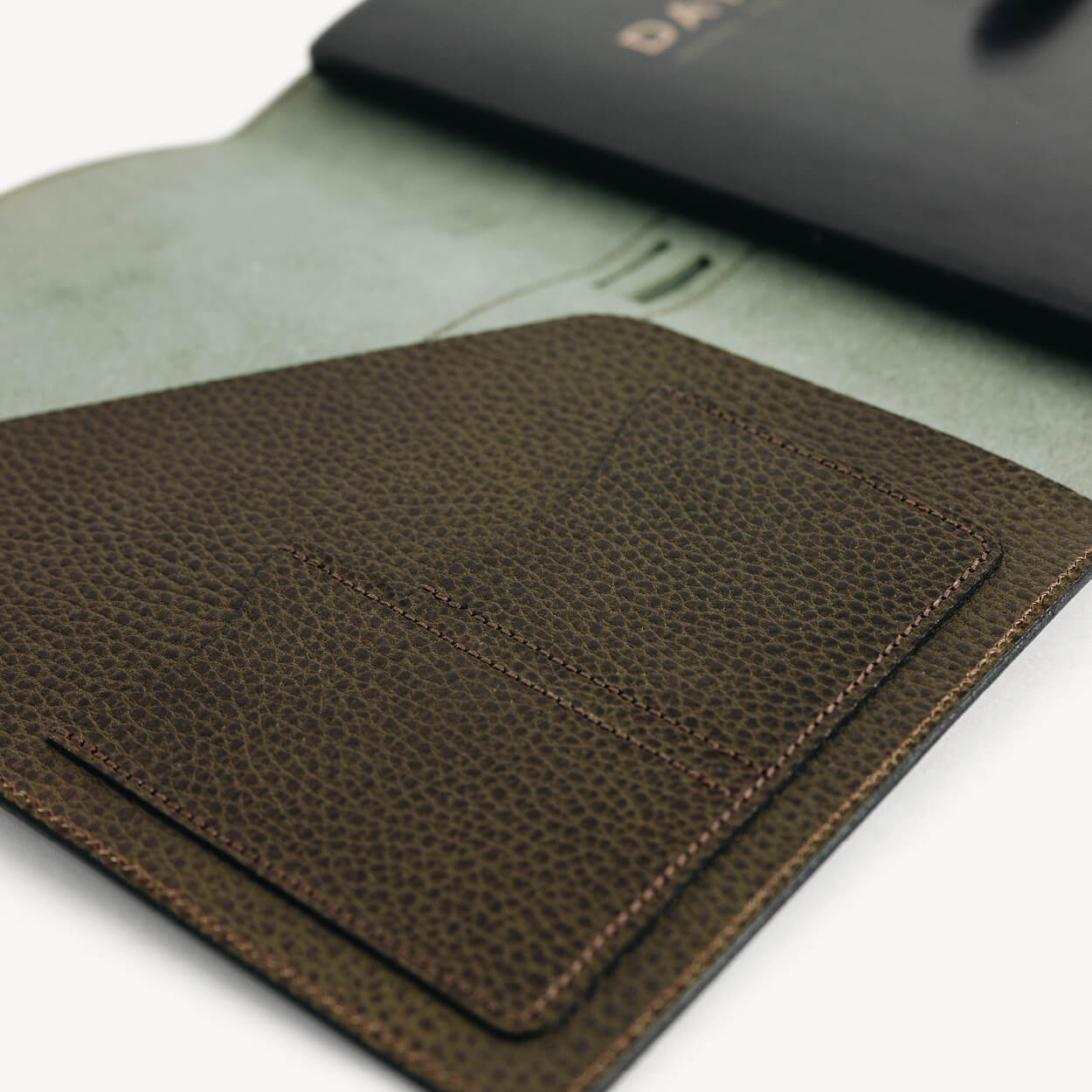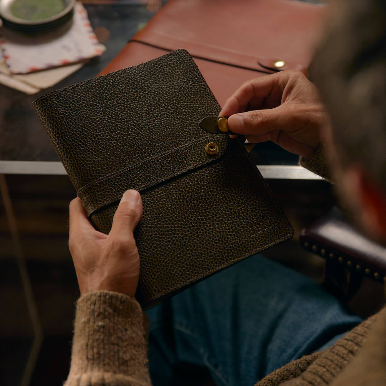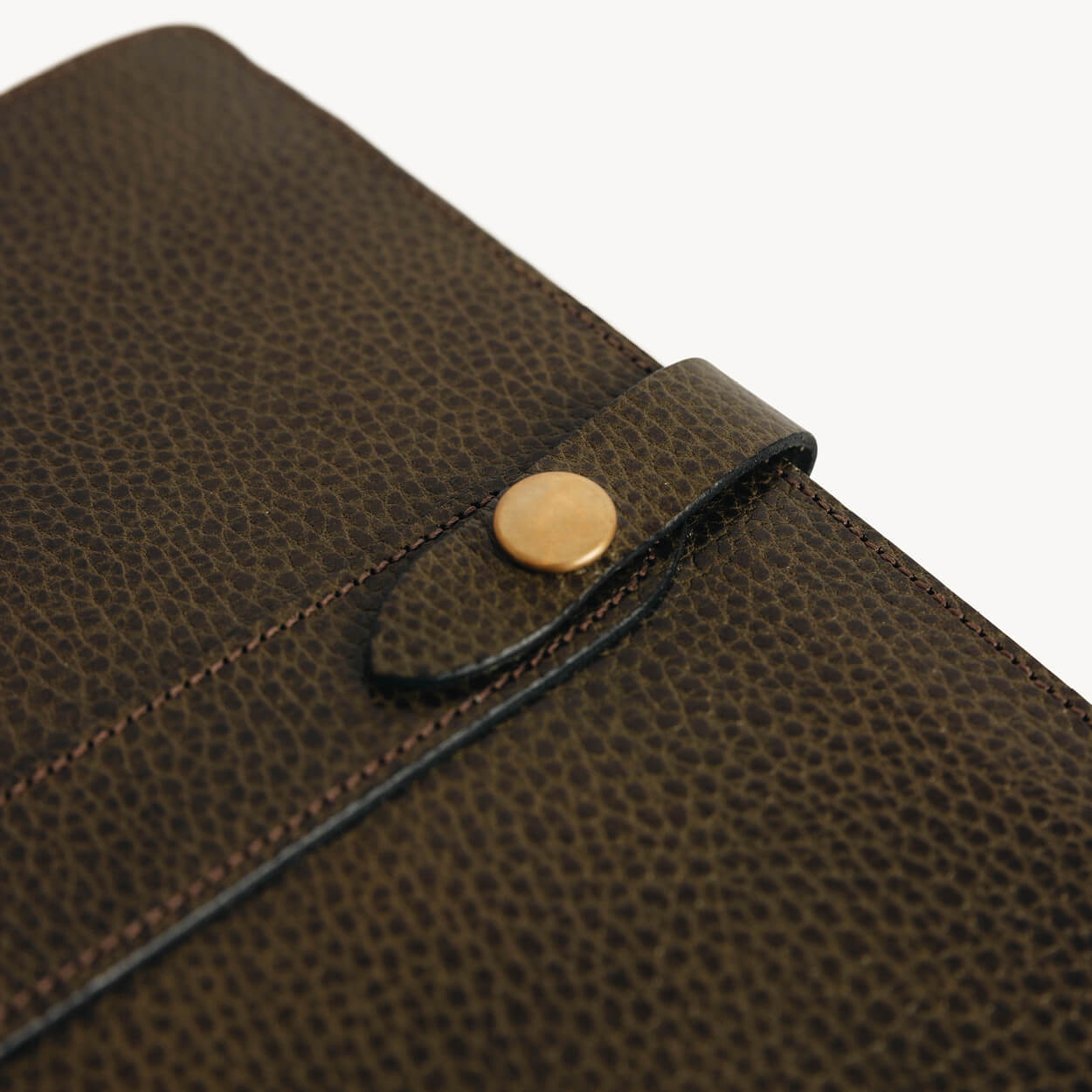 The Daybook features robust stitching, convenient pocketing for business cards, a handy pen loop, a solid brass snap closure, and of course our premium full-grain leather. Built to last throughout your entire professional career.