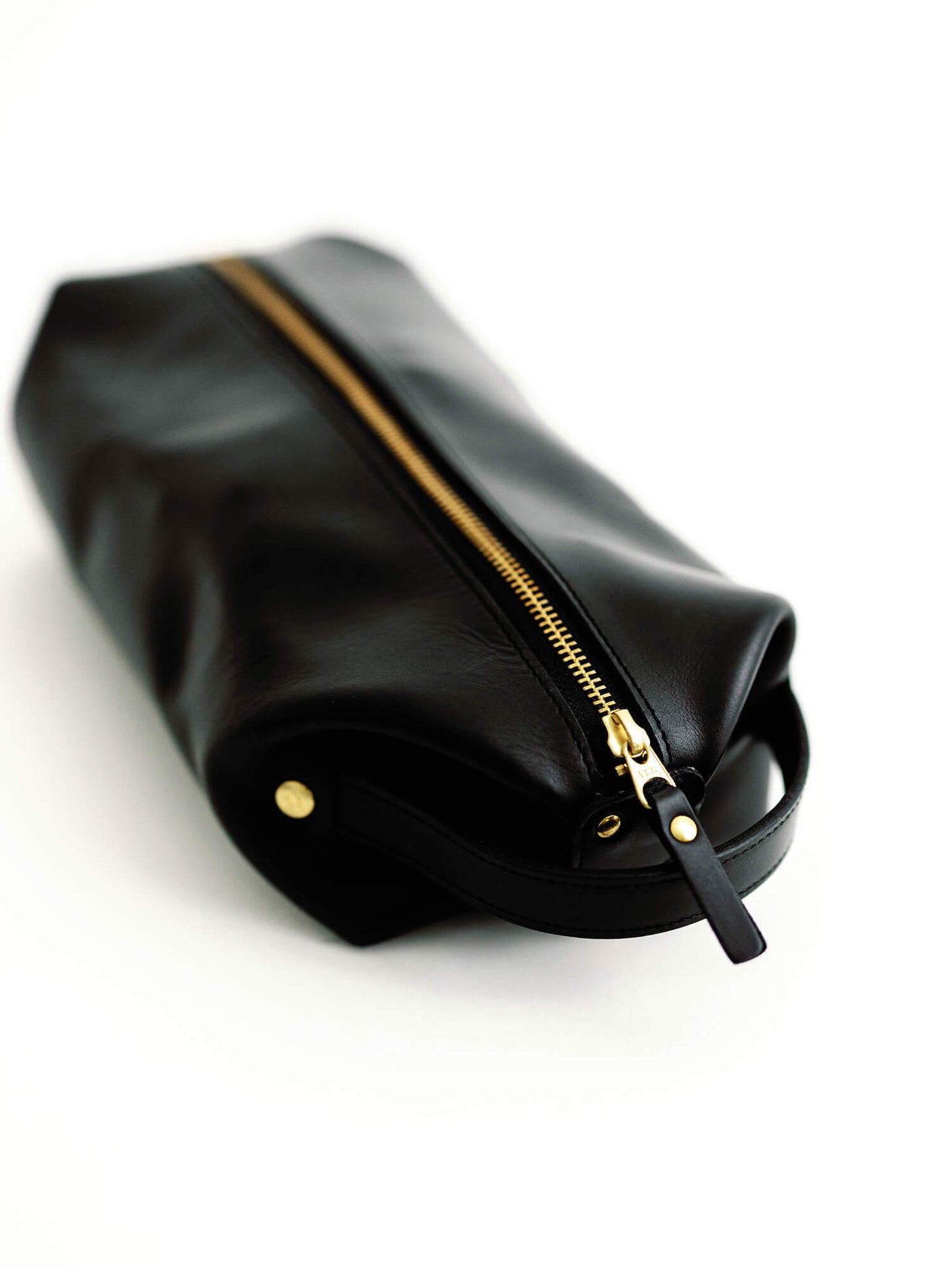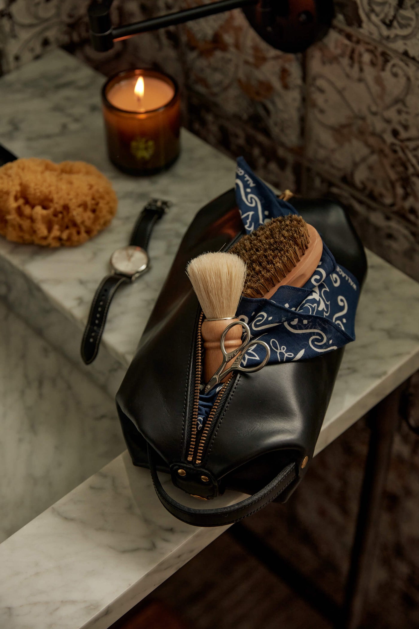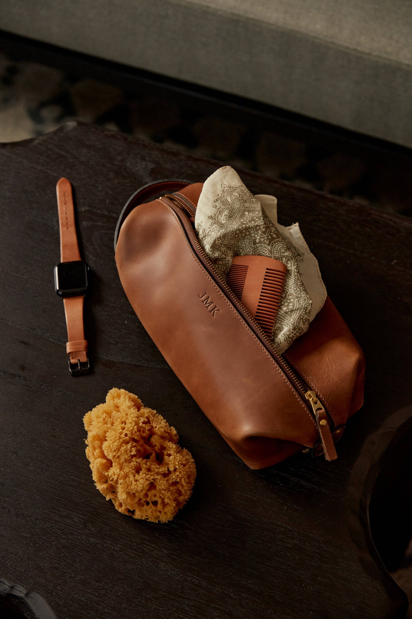 Our handmade men's leather Dopp Kit is built to stand the test of time, like the one grandpa used for decades. Perfectly sized to fit all your travel accessories-- you'll be surprised how much it can hold. Premium Horween full-grain leather and robust stitching for many years of service, guaranteed.