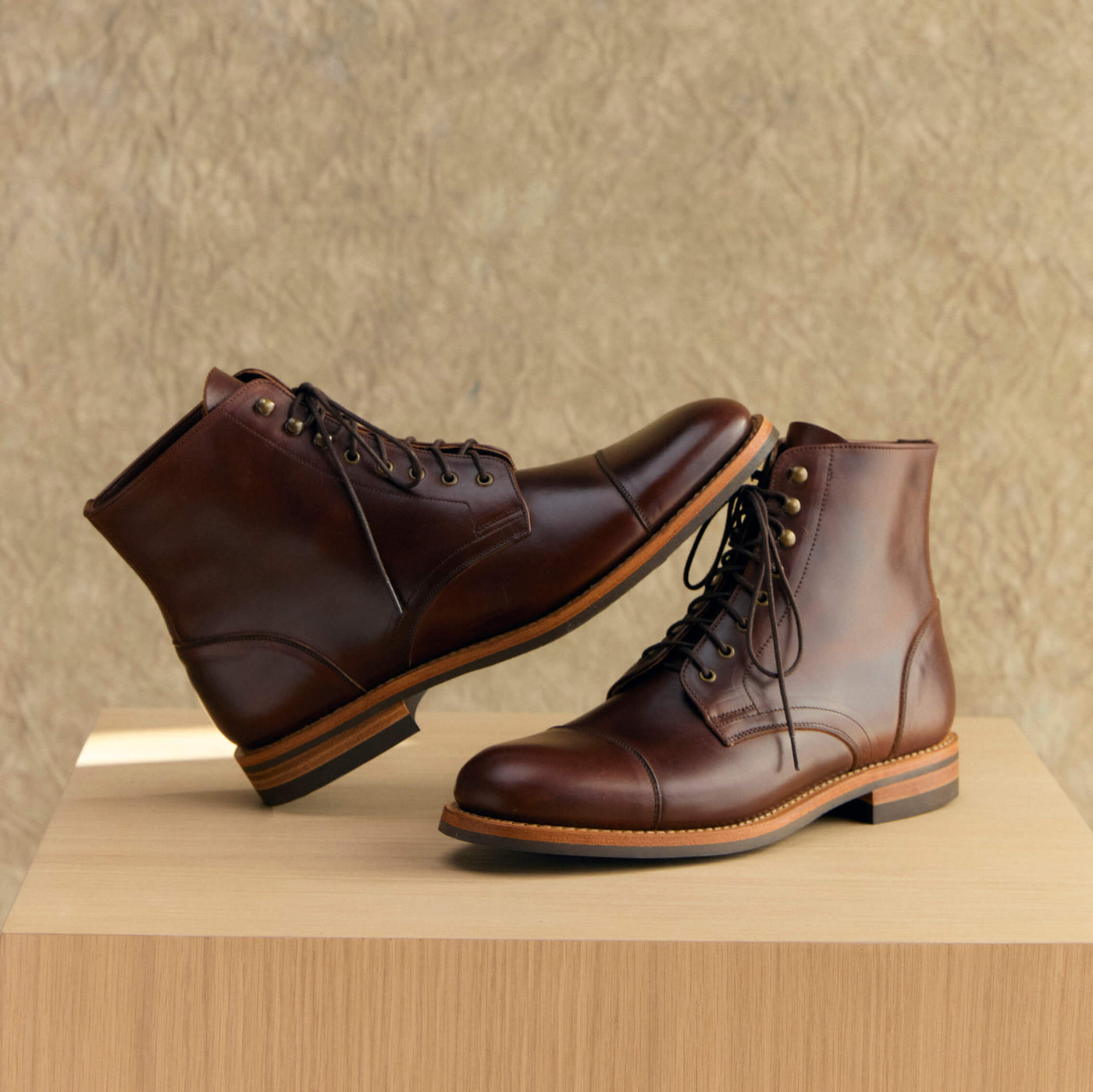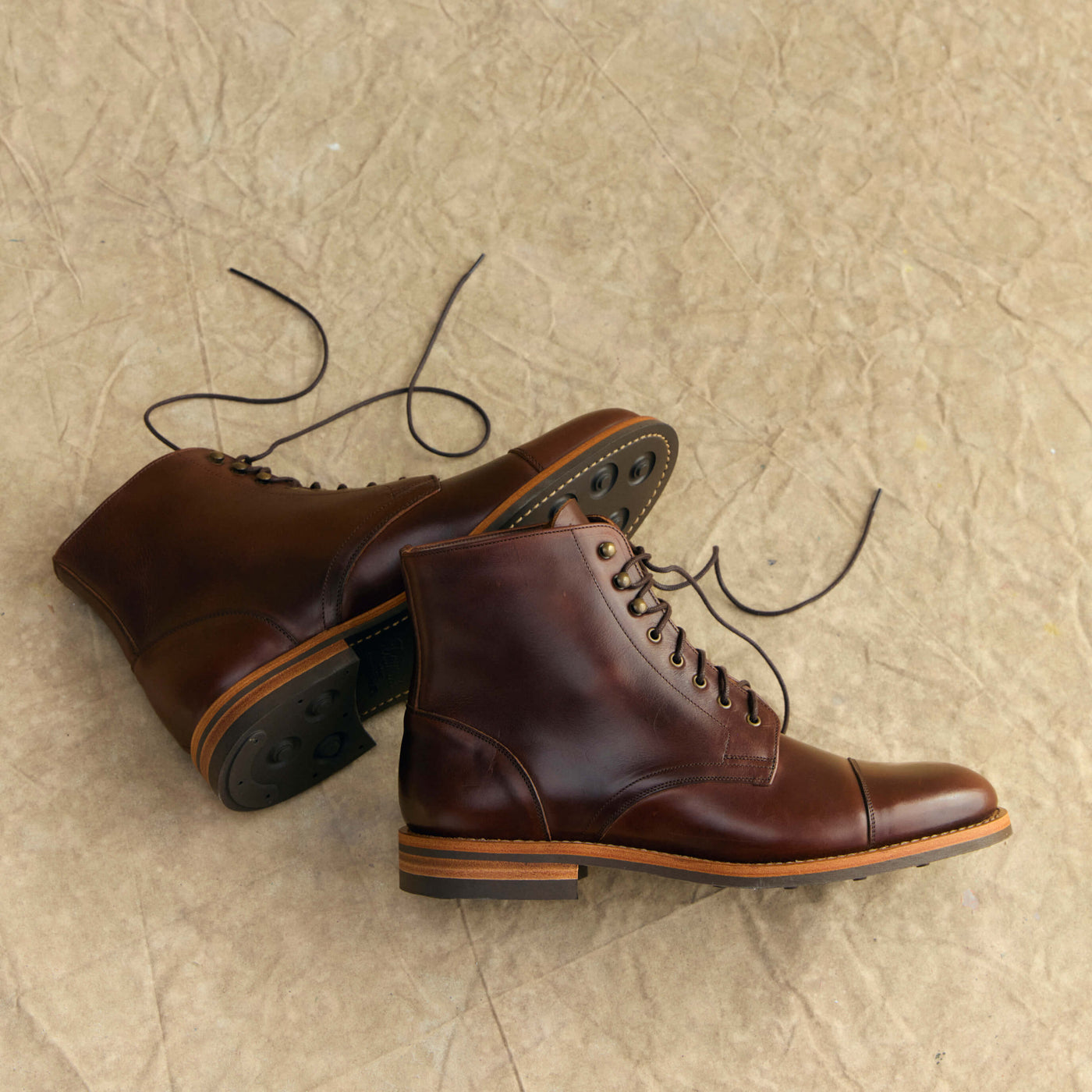 Our Heritage Boots are crafted with USA Horween Leather, sourced directly from the tannery in Chicago. Chromexcel leather was developed a century ago and it was made specifically for boots. It’s a high-quality leather, hot-stuffed with oils and waxes, making it highly weather-resistant. You can wear these boots in rain or snow, and they’ll hold up beautifully. Chromexcel leather is also exceptionally soft, allowing for a quick and comfortable break-in period.