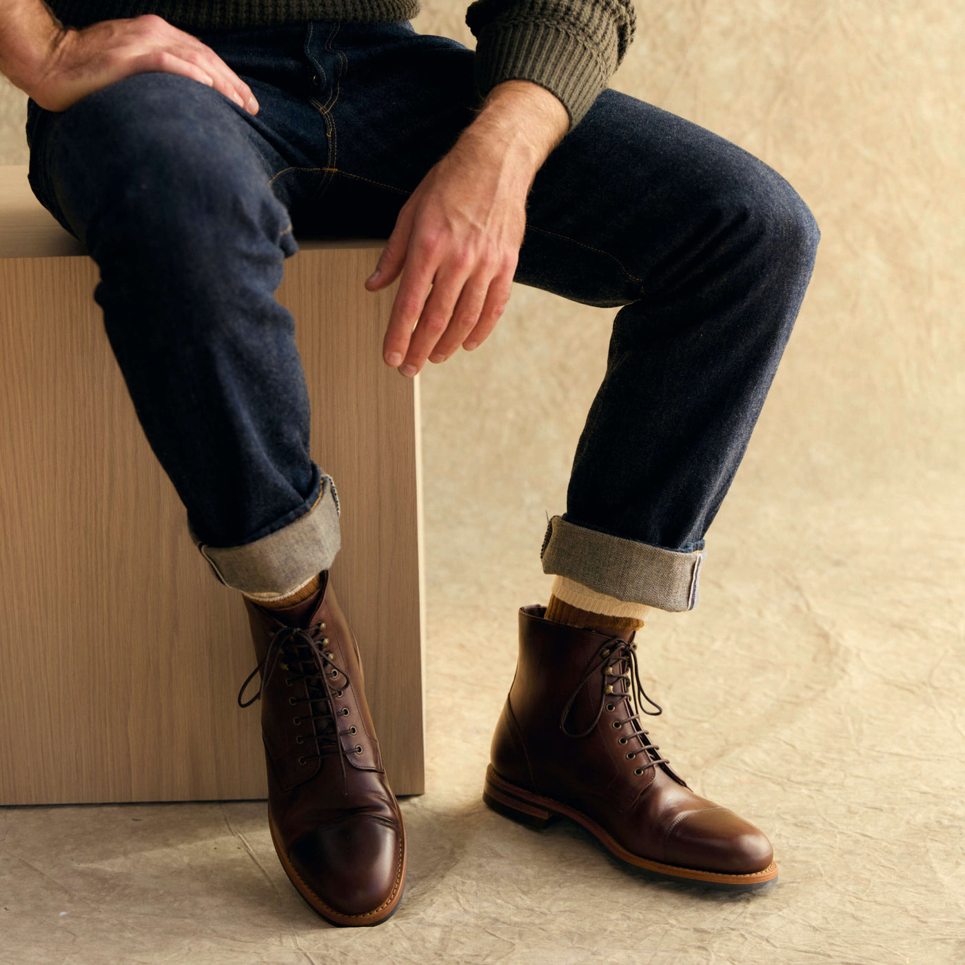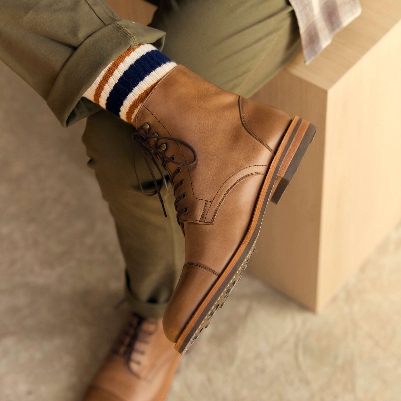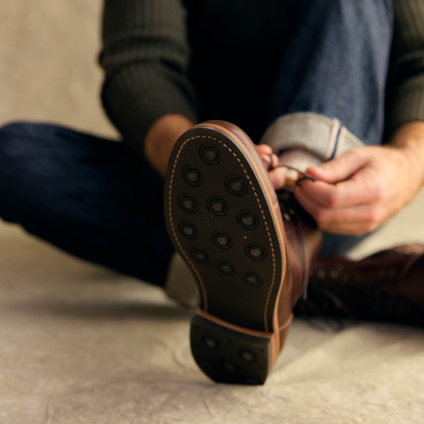 Our boots also feature a Dainite sole, a heritage sole known for its exceptional quality. It offers the performance of a rugged work boot without an overly rugged look.