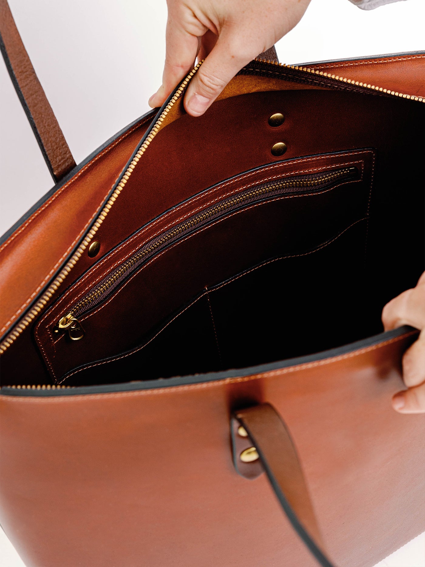 There’s more to our new Large Zip Tote than meets the eye. Though seemingly simple, we managed to pack in substantial pocketing on the interior for your laptop or tablet, while keeping the classic and timeless silhouette that we know best on the exterior. We focused our attention on the durability of our solid brass zipper and the careful construction that allows for an effortless zip and unzip.