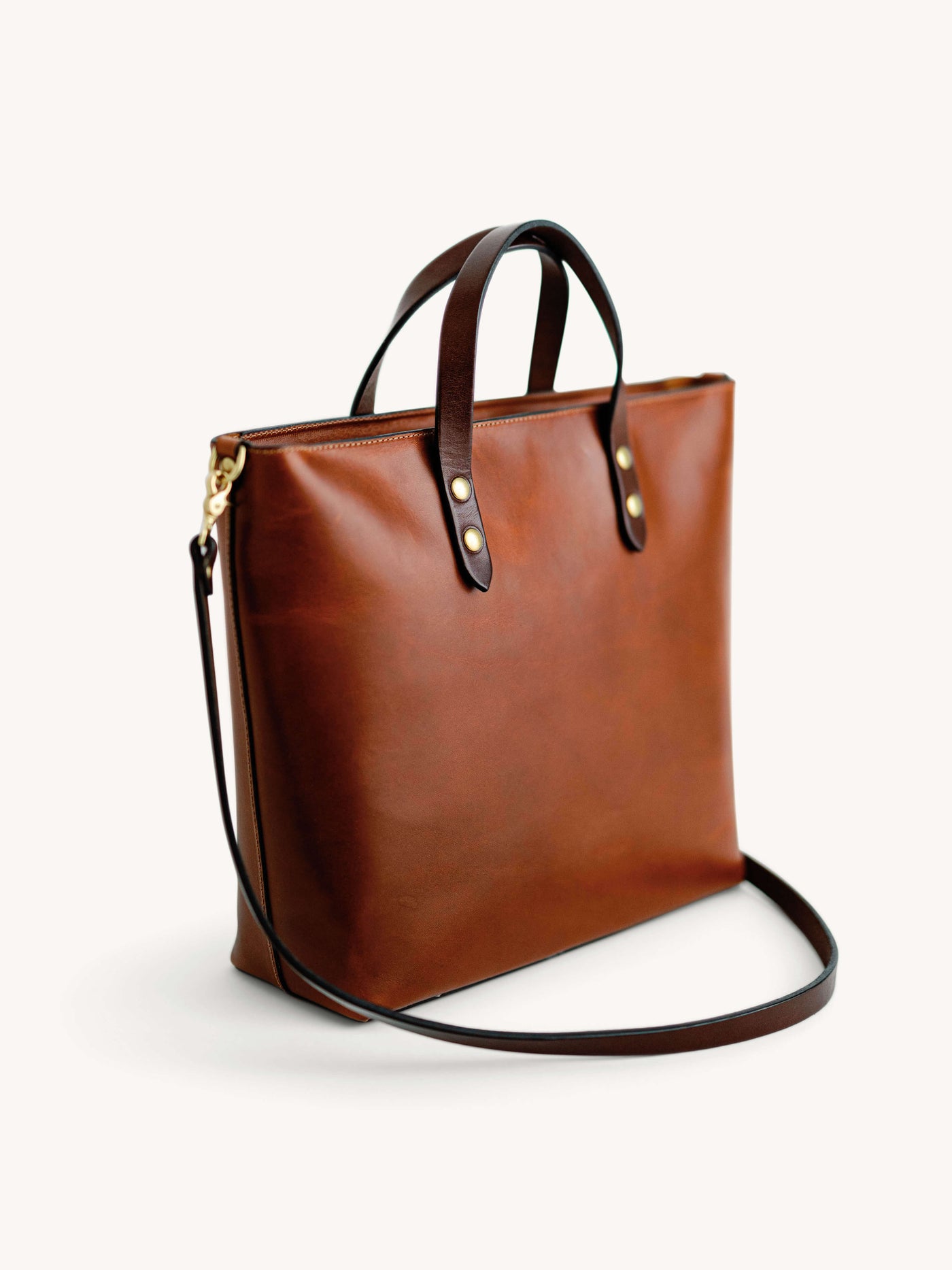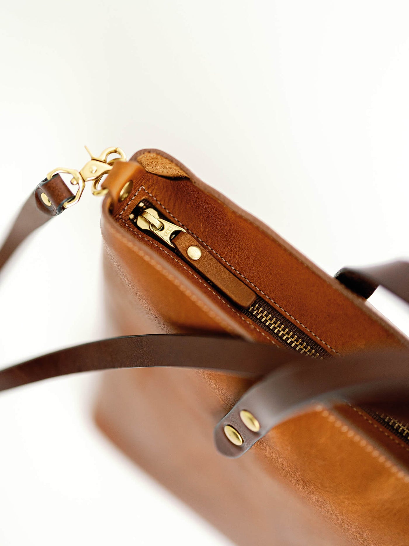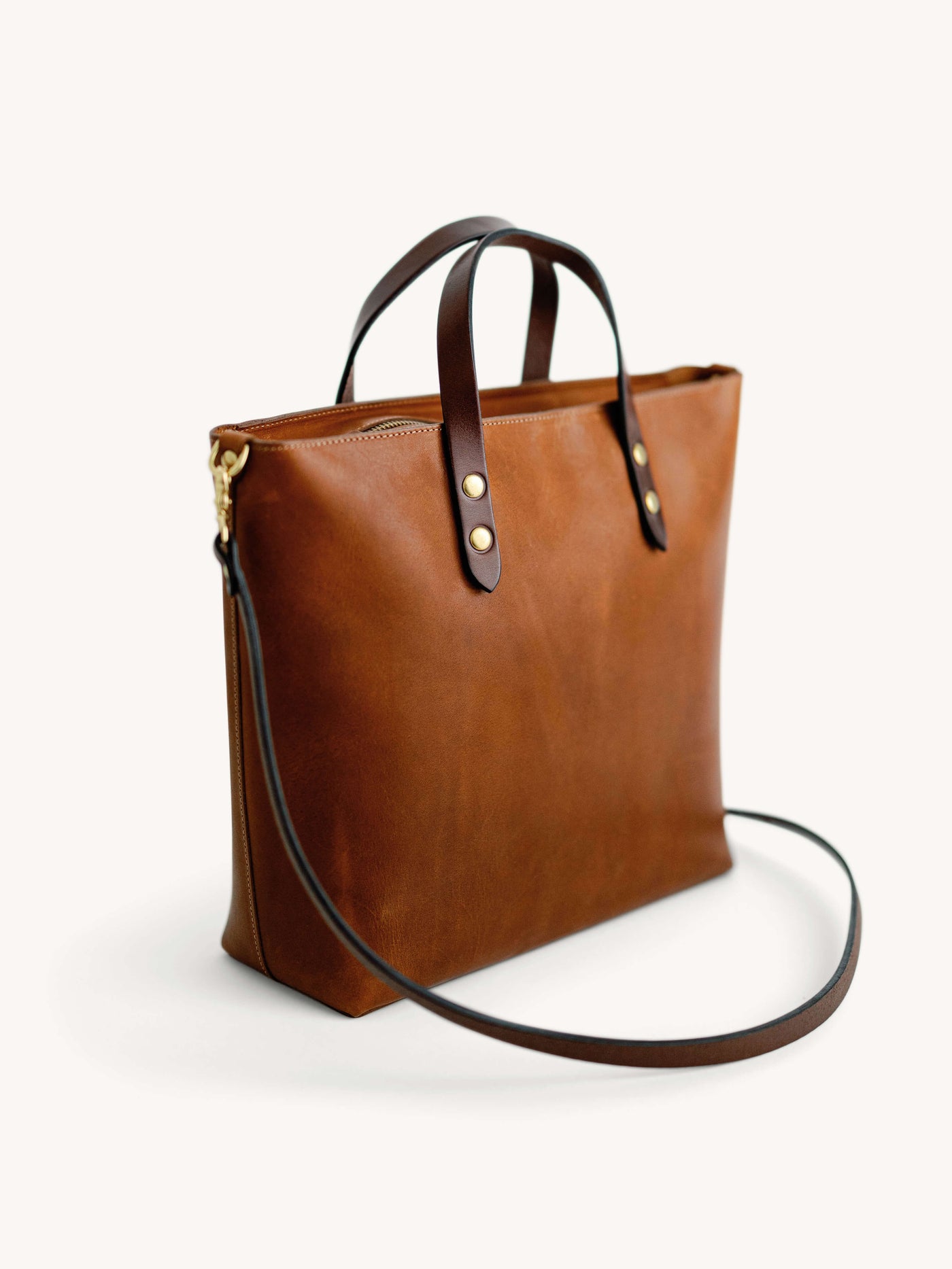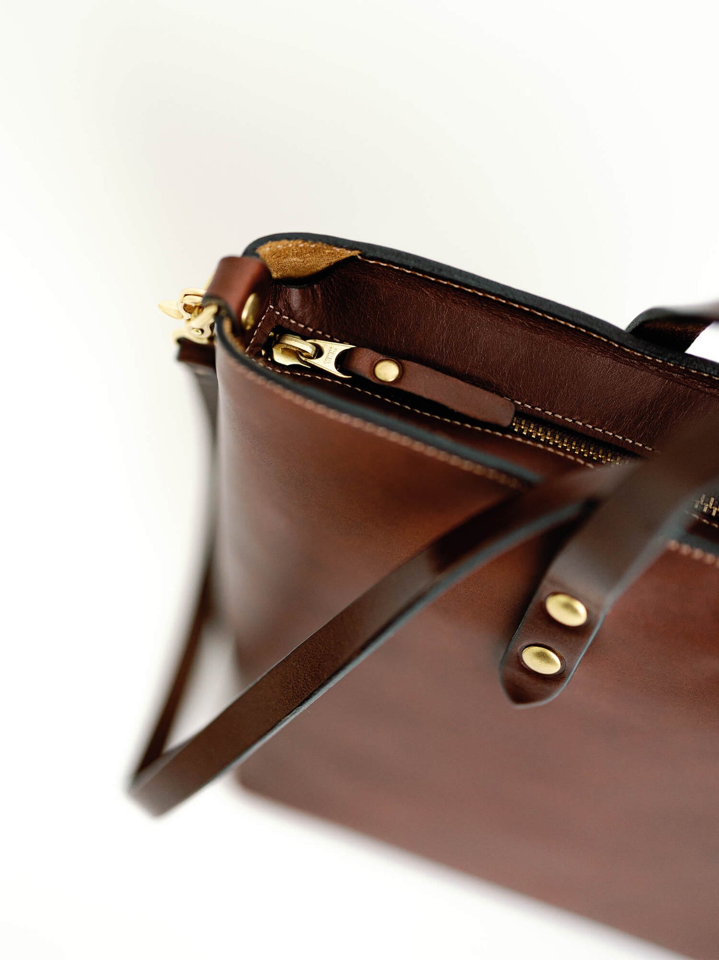 Our Medium Zip Tote is meticulously handcrafted, constructed with the highest quality full-grain leather, stitched with robust thread, and finished with our solid brass hardware —guaranteed to outlast any handbag in your closet. Our leather bags are backed with our honest guarantee: we stand behind the goods that we create.