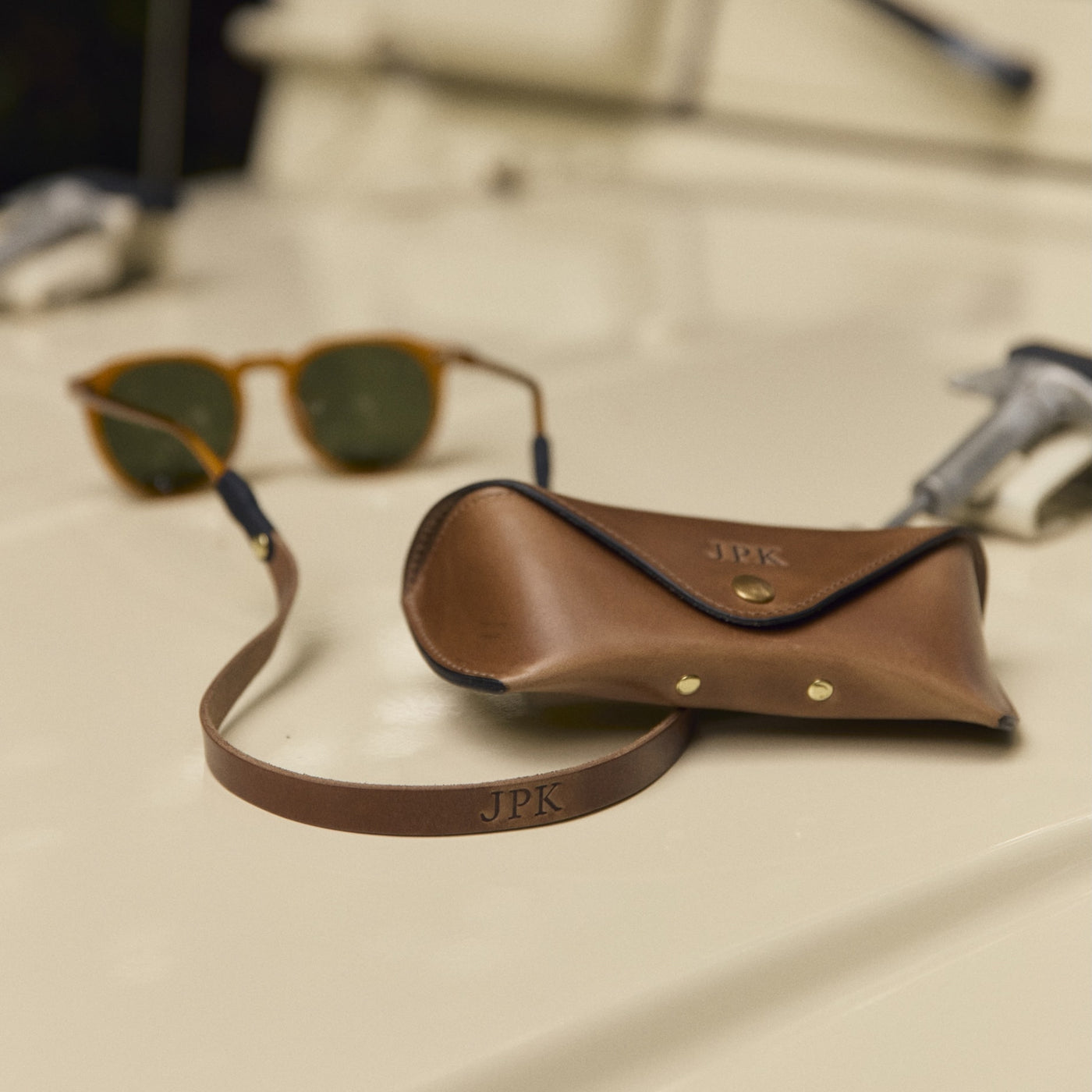 Personalize your leather Sunglass Straps with a complimentary monogram. (Up to 3 letters). Proudly handcrafted in Louisville, Kentucky.