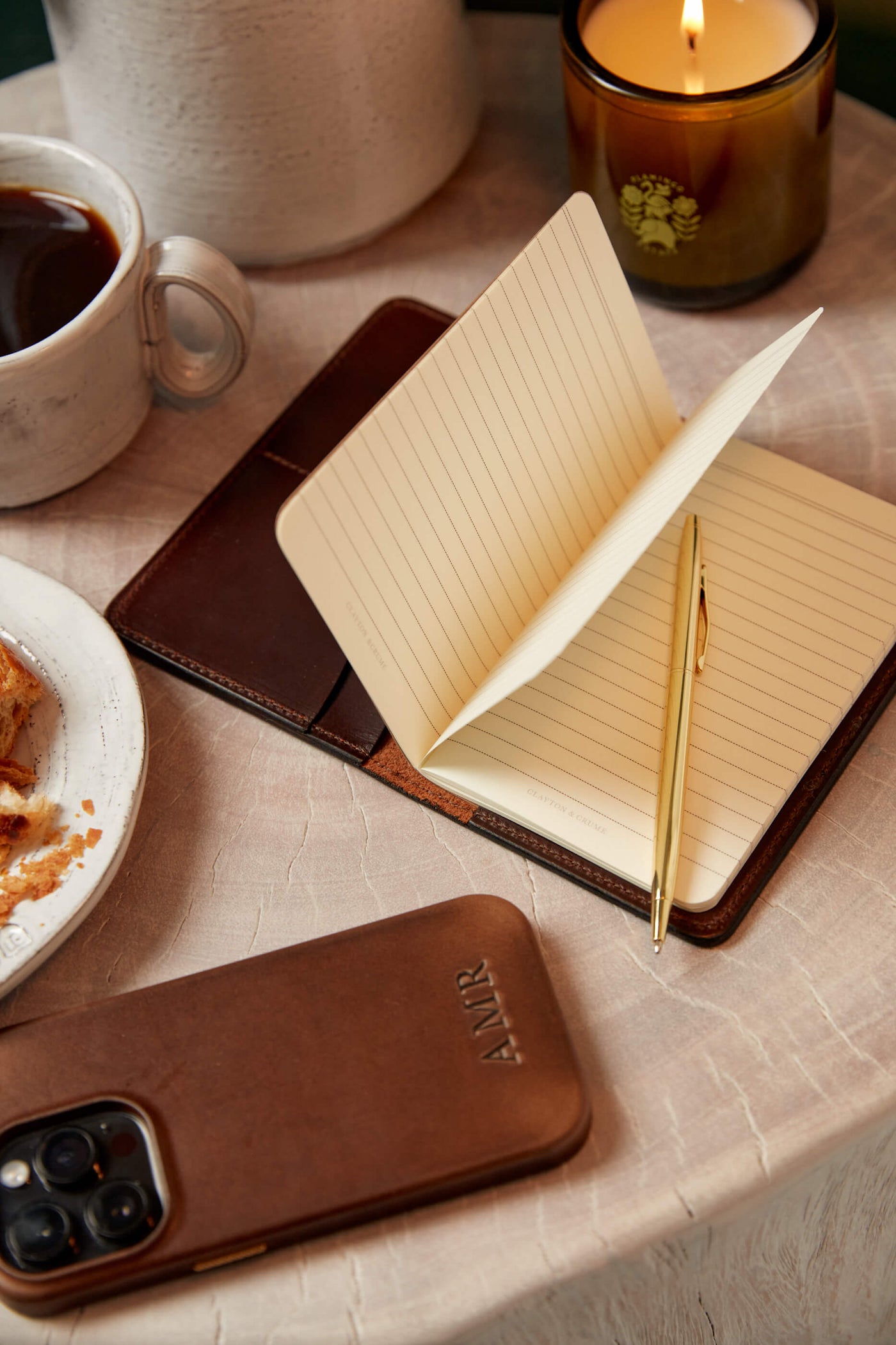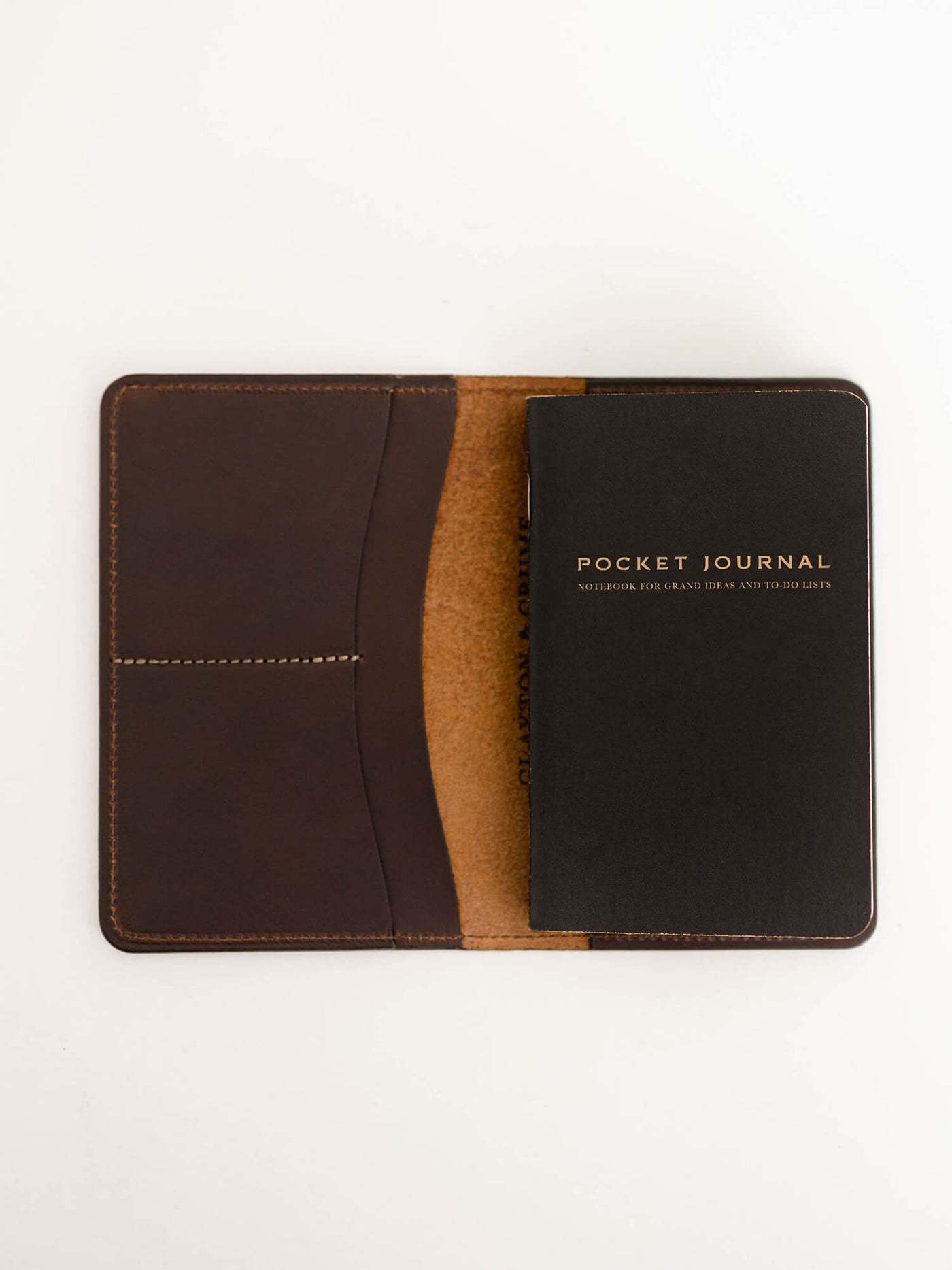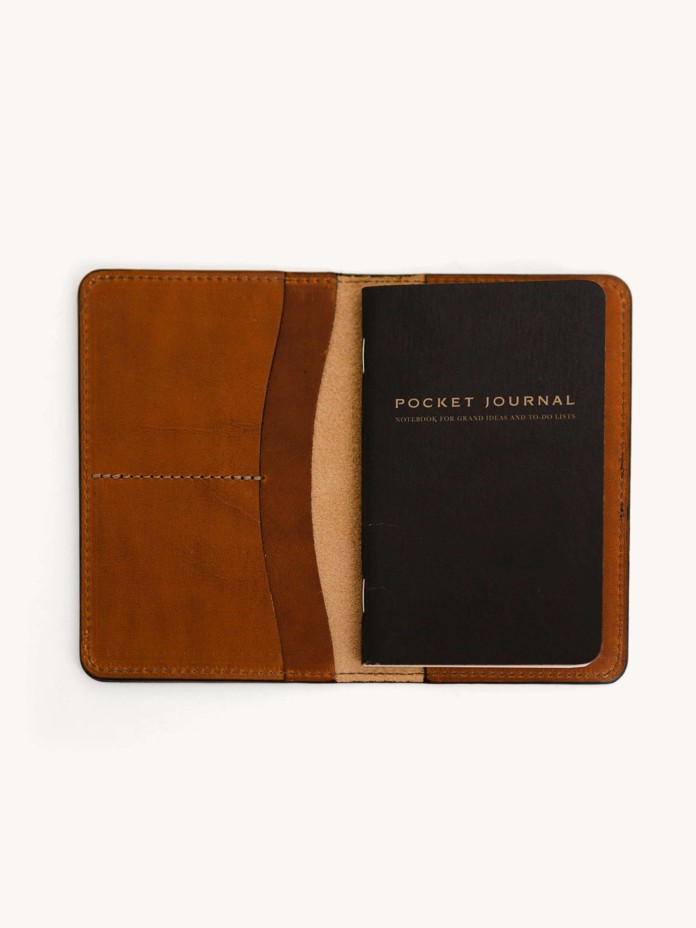 Our leather Pocket Journal is perfect for grand ideas & to-do lists. Fits snugly in a back pants pocket, and doubles well as a passport holder!