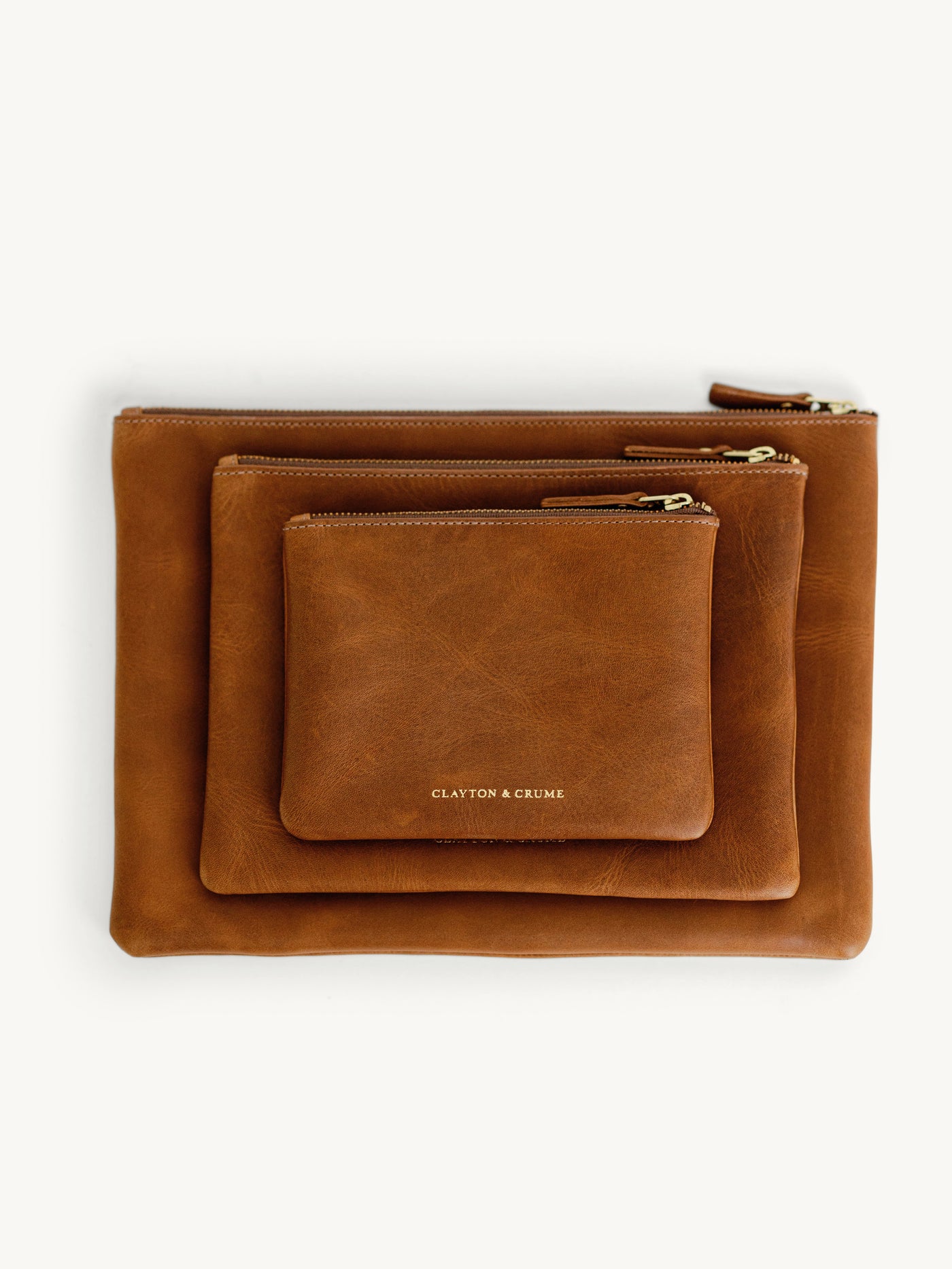 Add extra organization to your everyday carry with our new Utility Bags. We paired durable materials with a simple, clean design to bring you timeless leather zipper pouches that are sure to become a staple in your life. Take your pick of our three practical sizes: Small, Medium, or Large —or use them as a trio!