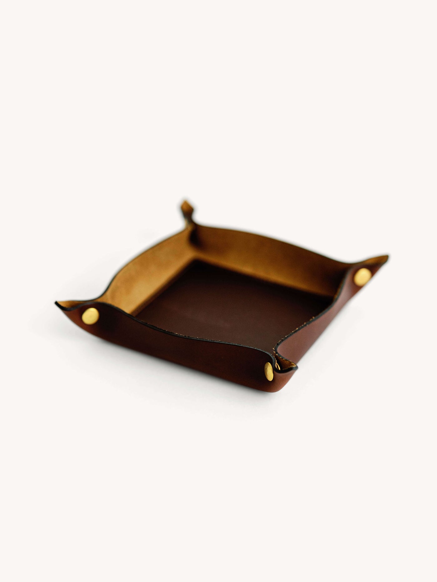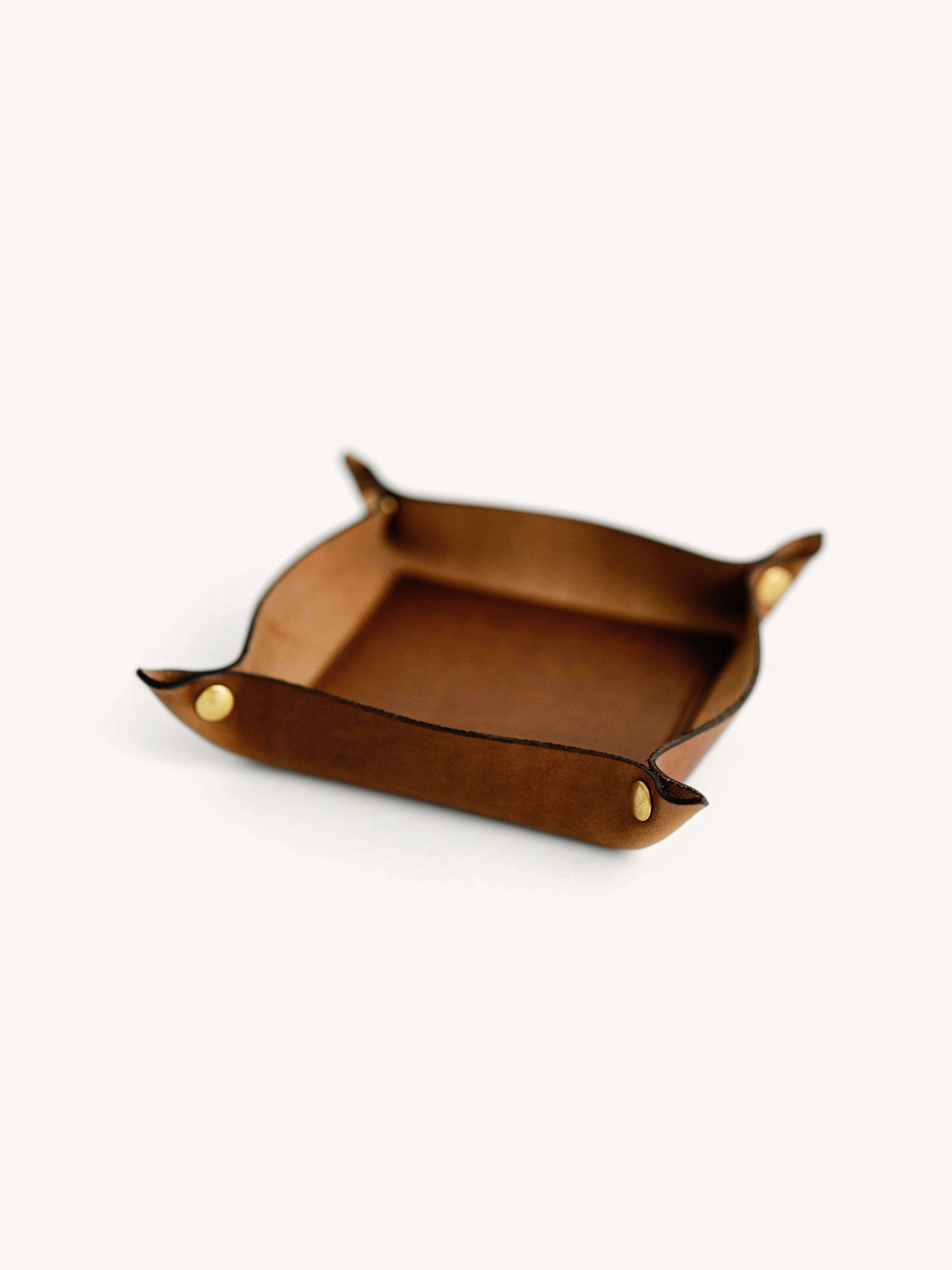 Our handmade leather Valet is a distinguished way to accessorize around the home or office.