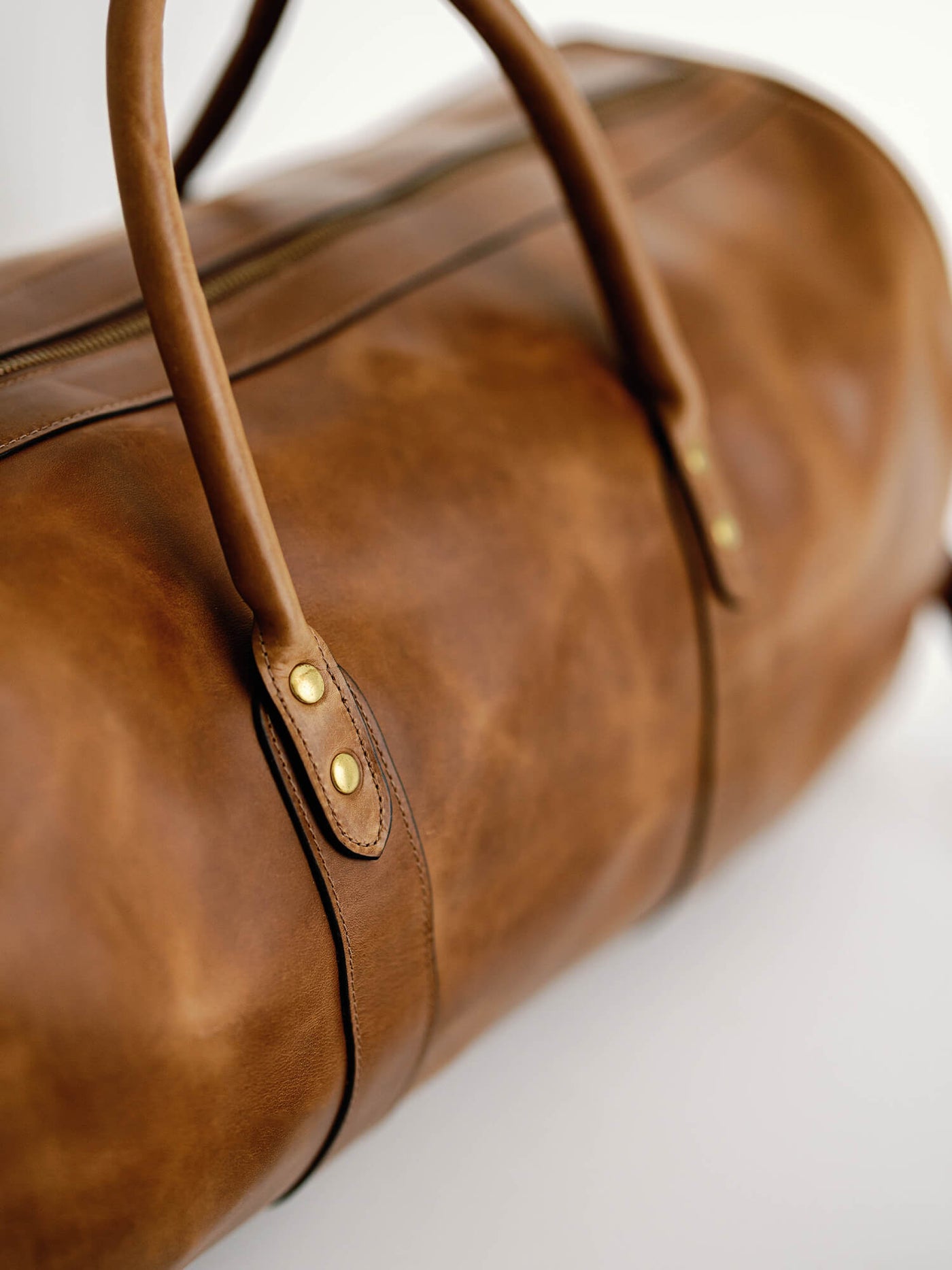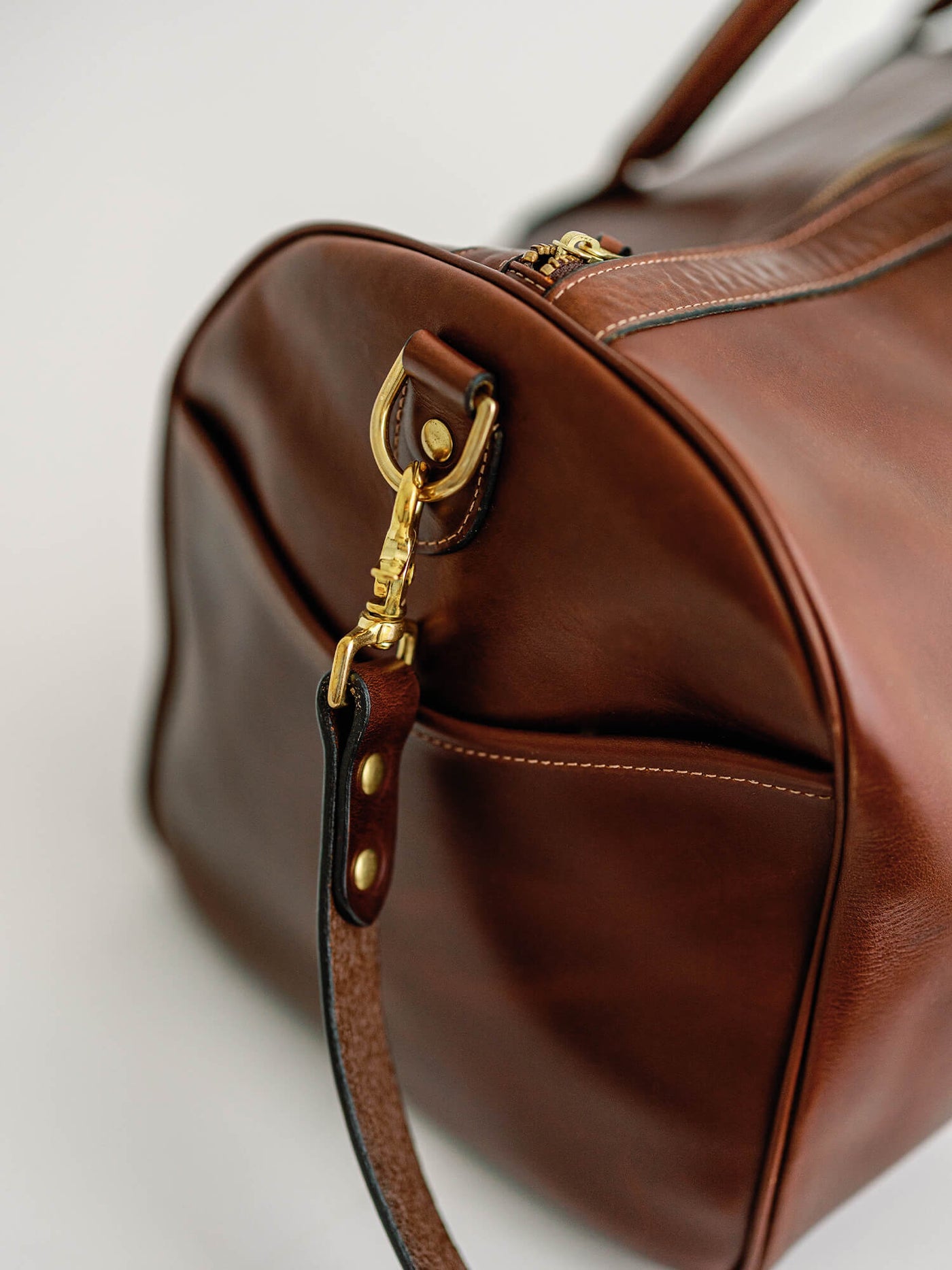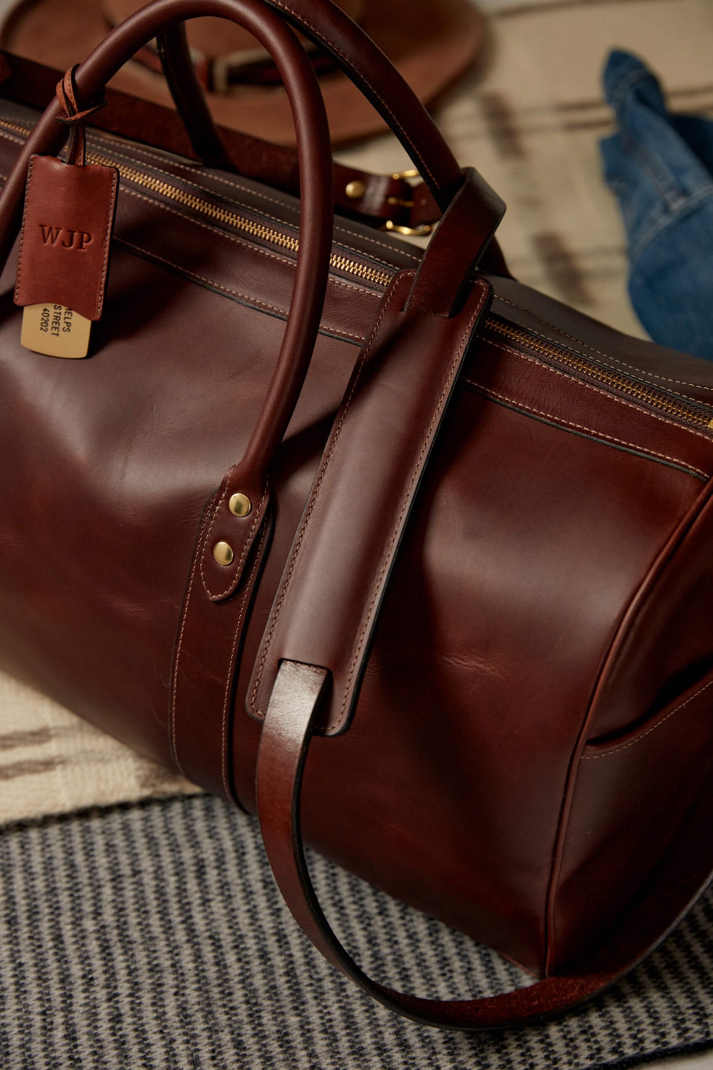 Timeless in design, the duffle boasts a mid-sized body making it perfect for a weekend getaway or as a carry-on in the overhead compartment. Because materials matter, we crafted this bag with our highest quality full-grain leather - each hide being unique in texture and character. Full-grain leather develops a rich, storied patina that shares the one-of-a-kind journey your travel bag should have.