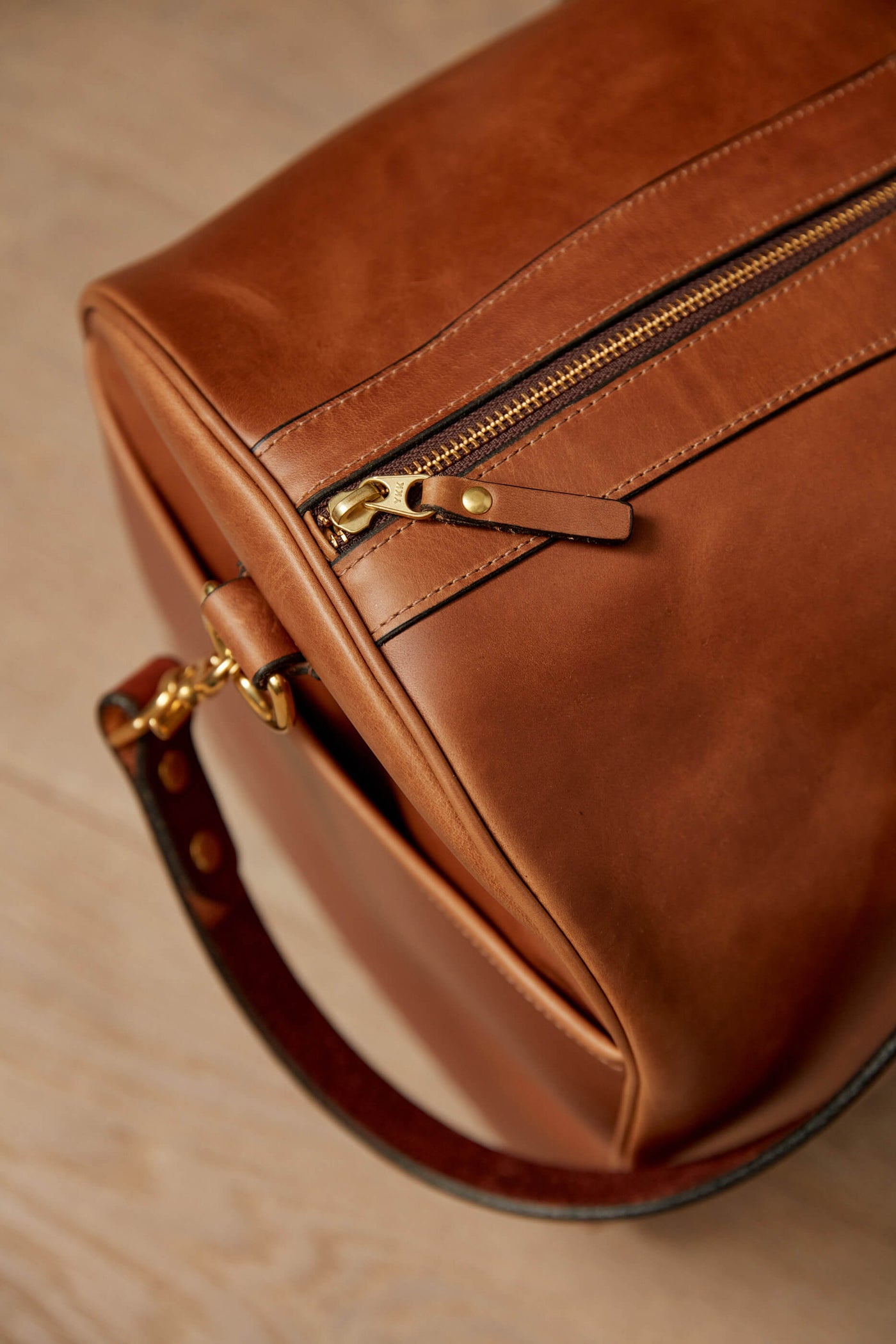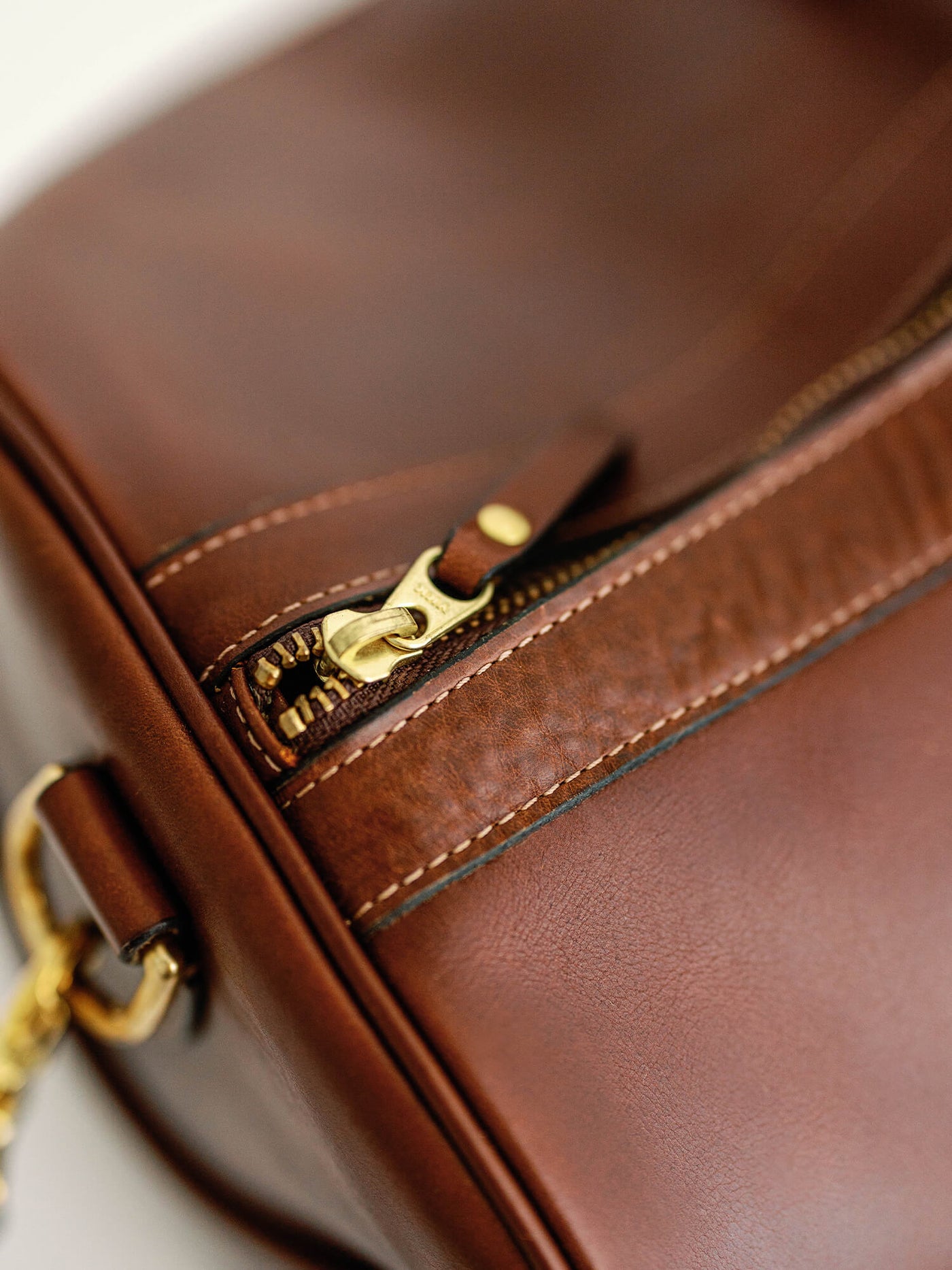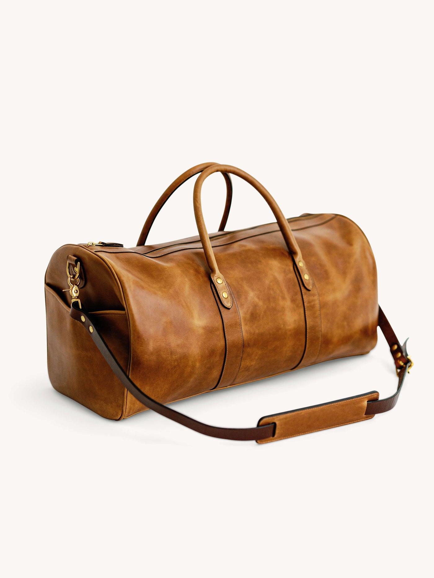 Timeless in design, the duffle boasts a mid-sized body making it perfect for a weekend getaway or as a carry-on in the overhead compartment. Because materials matter, we crafted this bag with our highest quality full-grain leather - each hide being unique in texture and character. Full-grain leather develops a rich, storied patina that shares the one-of-a-kind journey your travel bag should have.