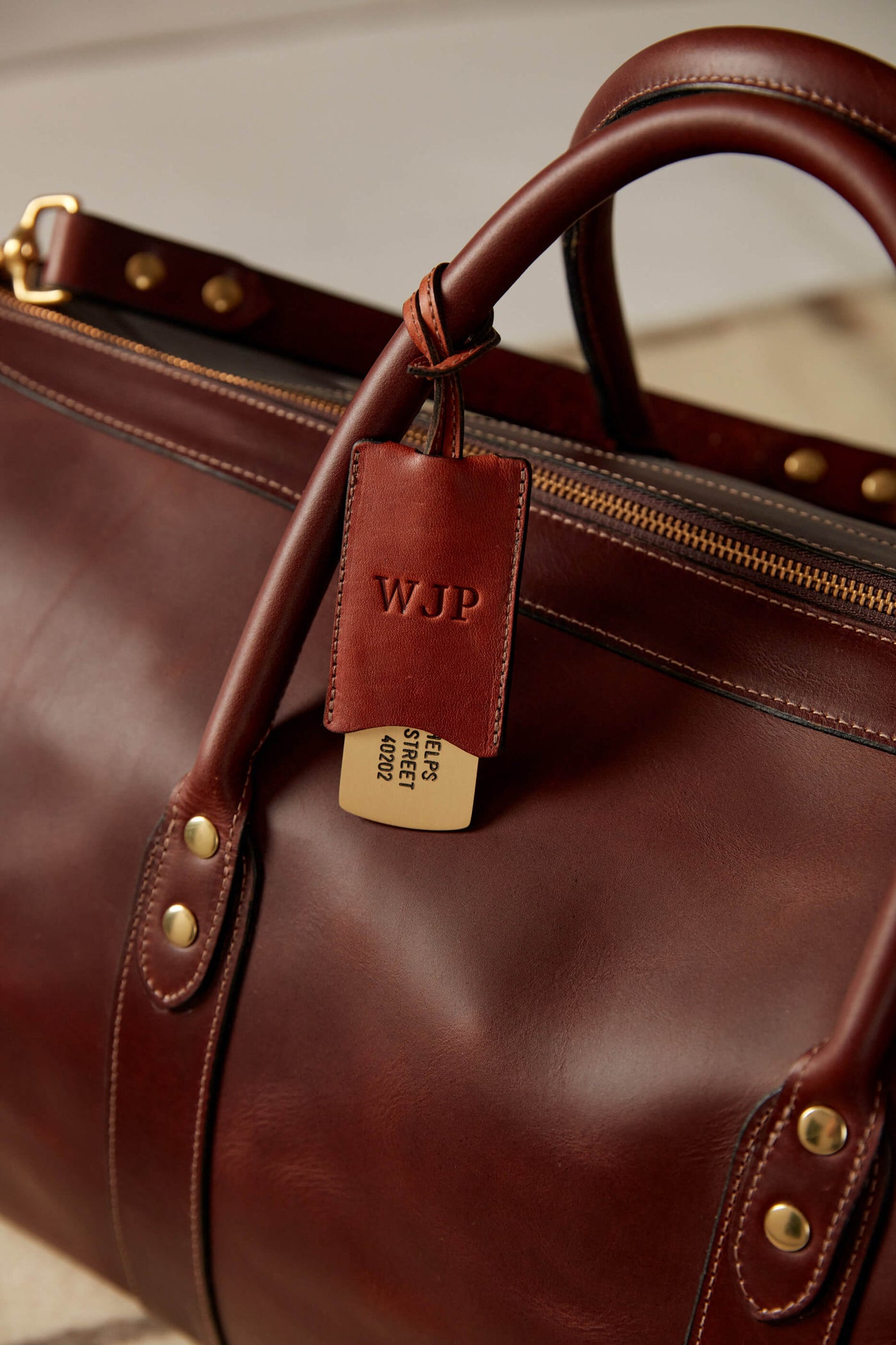 Add the new Solid Brass Luggage Tag for a completely customized heirloom bag.